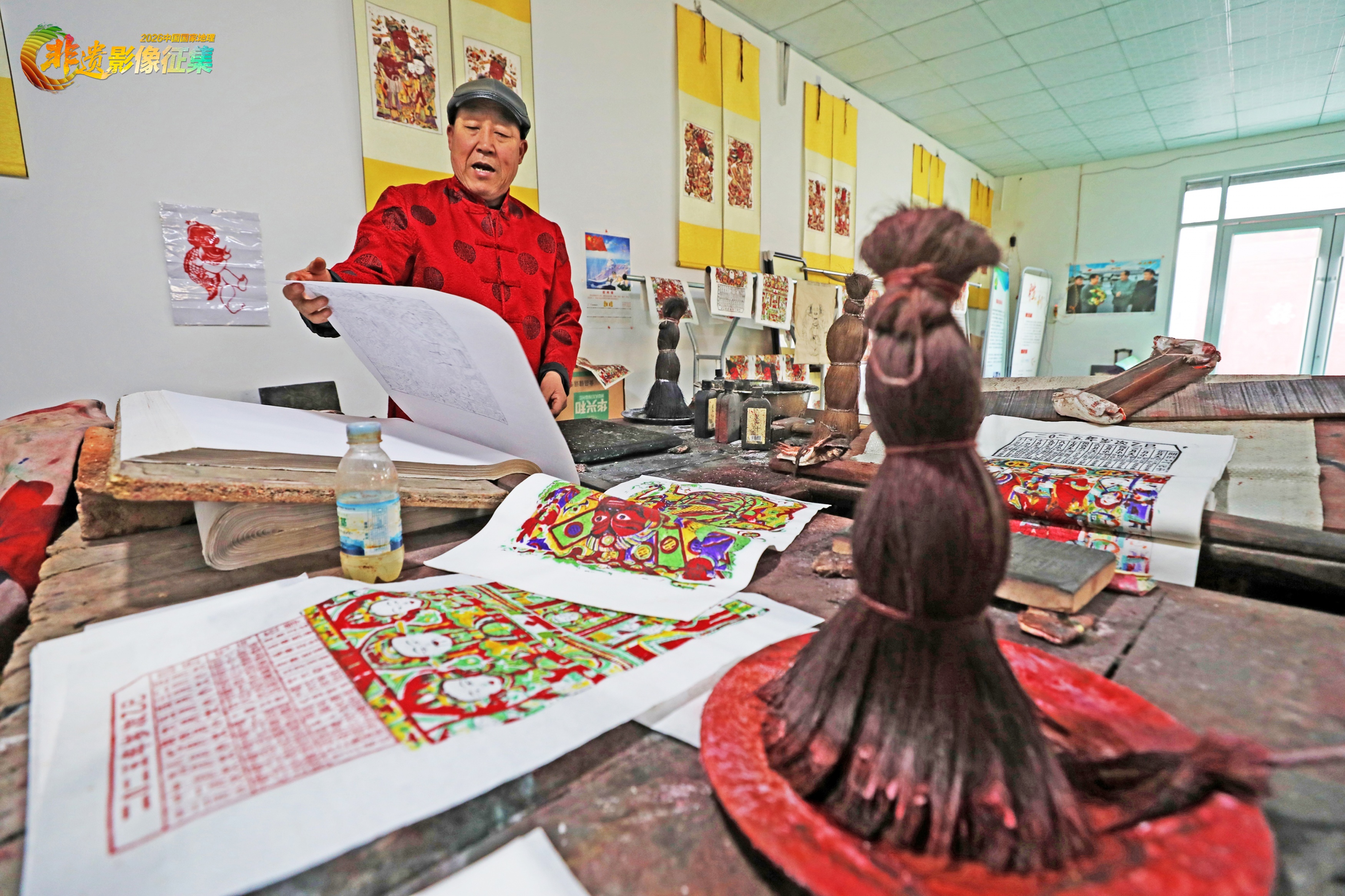 2026年2月5日,山东省临沂市郯城县郯城街道木版年画制作艺人孙宪喜正在制作木版年画。