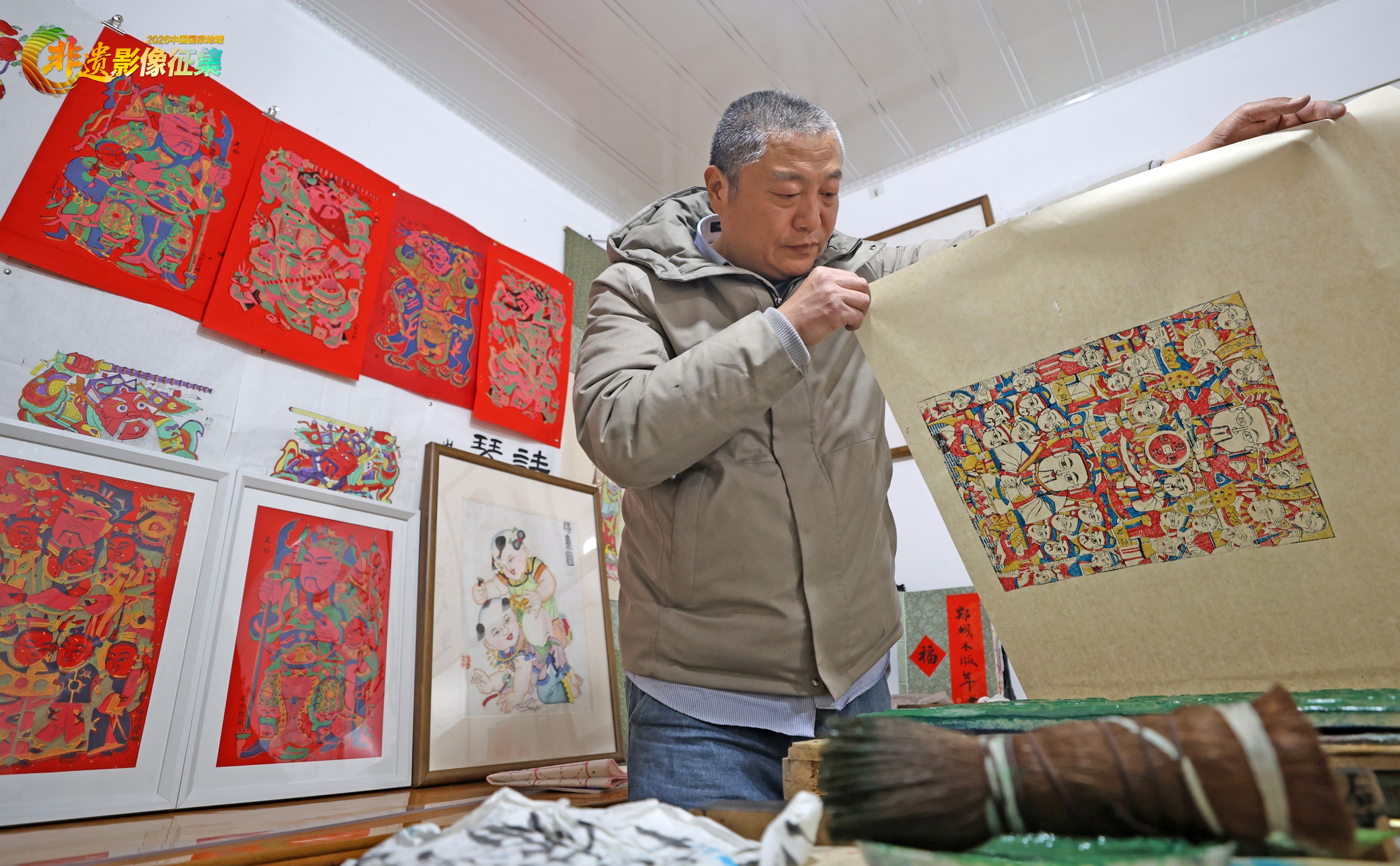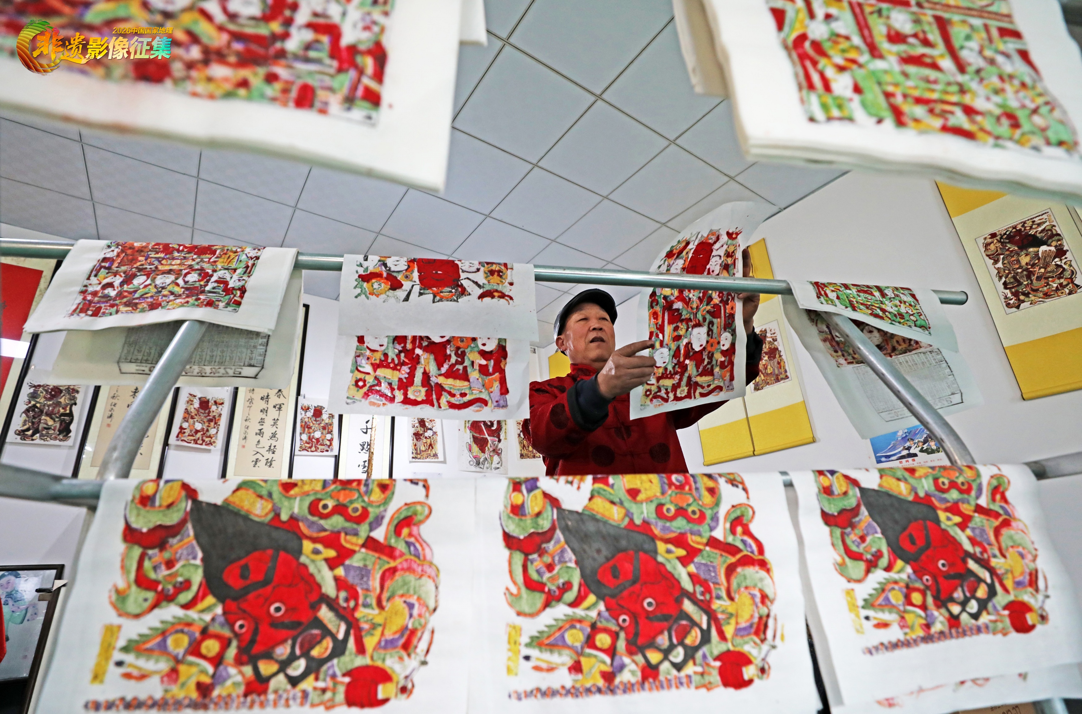 2025年1月17日,郯城木版年画市级代表性传承人张丙爱正在整理制作完成的木版年画。