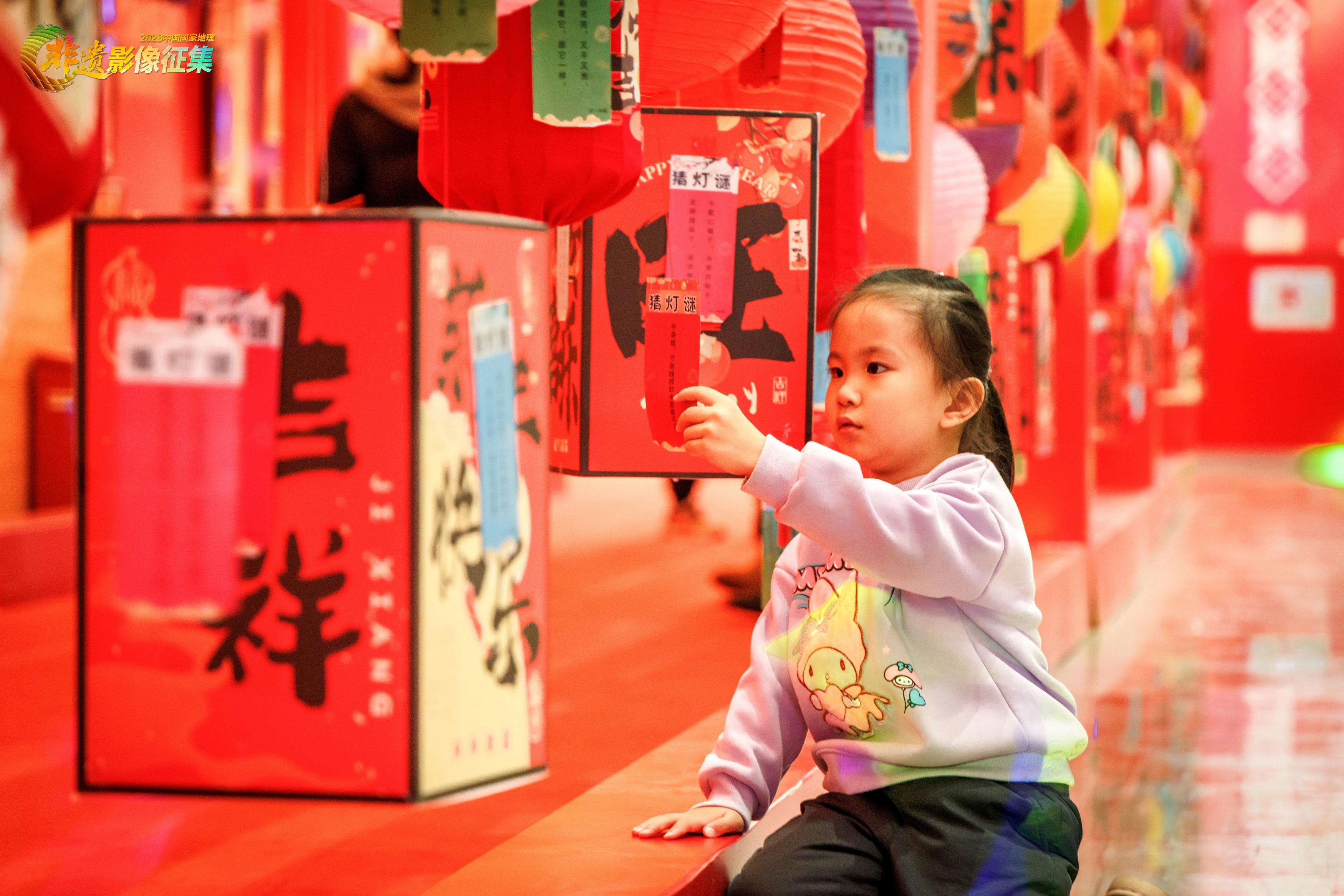 2026年3月3日拍摄于新疆克拉玛依市,元宵灯谜游园集市活动上、一个小姑娘正在专注地思考灯谜答案。