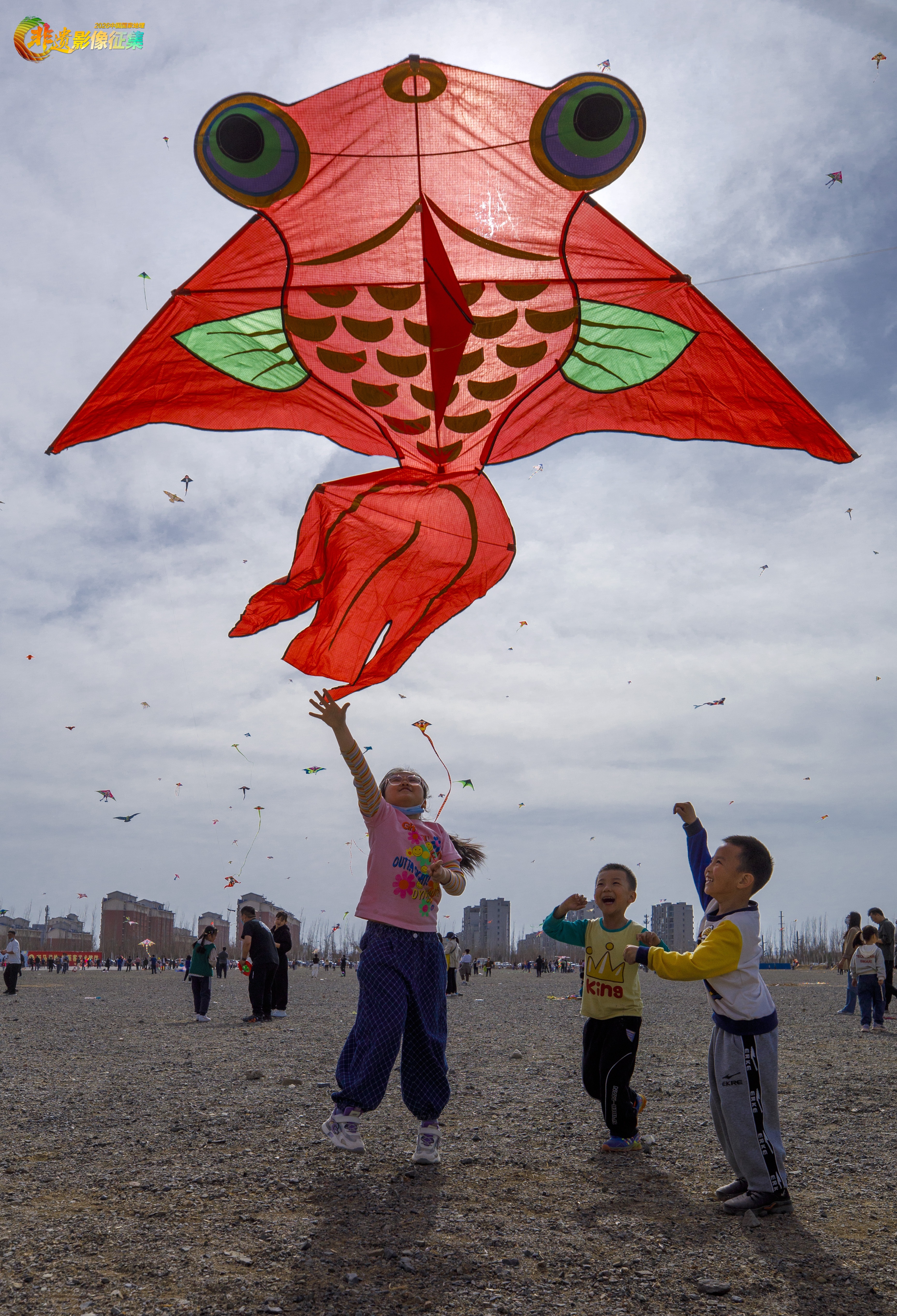 2022粘月摄于新疆克拉玛依,春风和煦,风筝漫天飞舞,几个孩子快乐的追逐风筝。