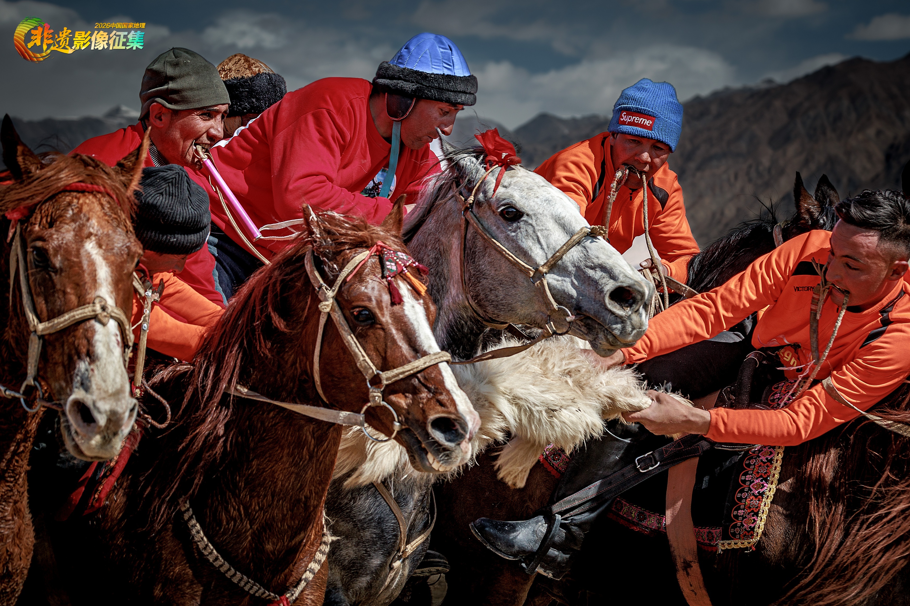 拍摄于新疆塔什库尔干县提孜那普乡,塔吉克族节日肖贡巴哈尔节期间,举办传统叼羊比赛,雪山脚下一场场原生态激烈的叼羊比赛,掀起一阵阵活动高潮。