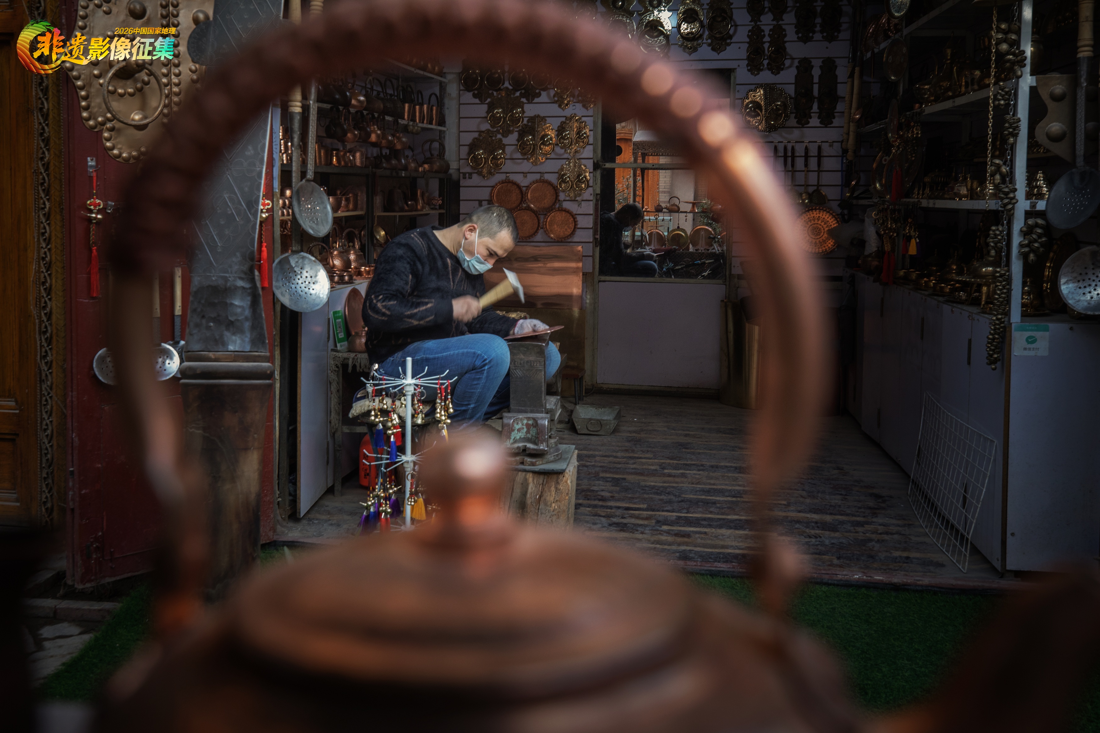 新疆喀什老街有一批维吾尔族铜器制作手工艺人,他们在老街的店铺一边现场制作,一边售卖手工艺品,浓郁的民族特色制品不仅满足了当地居民的生活需要,同时还吸引了外地游客,或驻足观看、或购买留念。