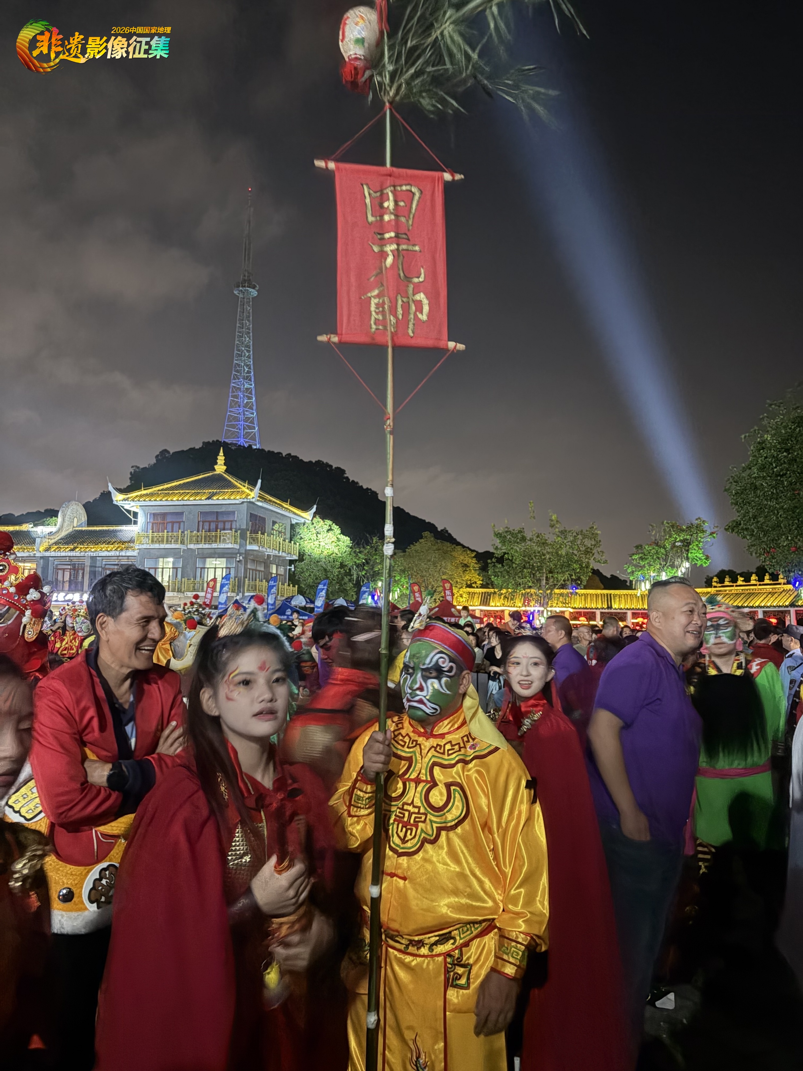 2025年11月7日,“英歌战舞·舞动四海”普宁市英歌汇演在广东省普宁莲花山公园举行,泰国、马来西亚以及广东本土等十余支英歌队同台展演,快板、中板、慢板英歌,以及女子英歌,以武会友。田元帅为英歌舞的保护神。此为活动开场前所摄。