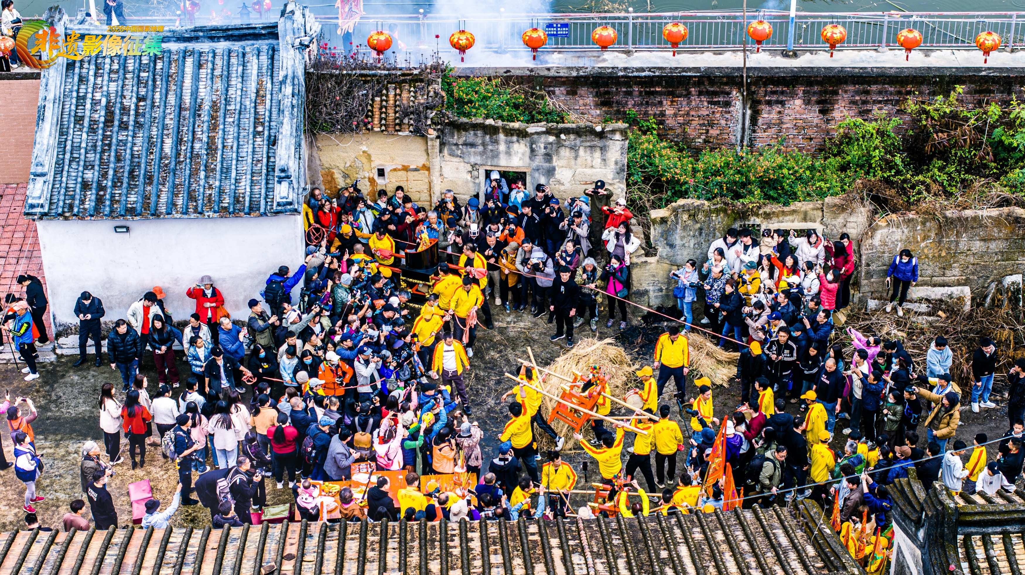 营老爷是潮汕地区正月最核心的民俗盛典,潮汕话里“营”即巡游,“老爷”指各村供奉的保护神,实质是神明出巡绕境,核心寓意驱邪护宅、风调雨顺、合境平安 。它是一场集信仰、仪式与狂欢于一体的年度大事件,各村社轮流举办,场面震撼。神轿为核心,前有马头锣、虎头牌、高灯彩旗、彩标开路,中伴潮州大锣鼓、英歌舞,后随神轿,全程燃放鞭炮 。青壮年抬轿疾跑、颠轿,甚至跳火坑、冲草垛,越颠越灵,是高潮狂欢环节 。
