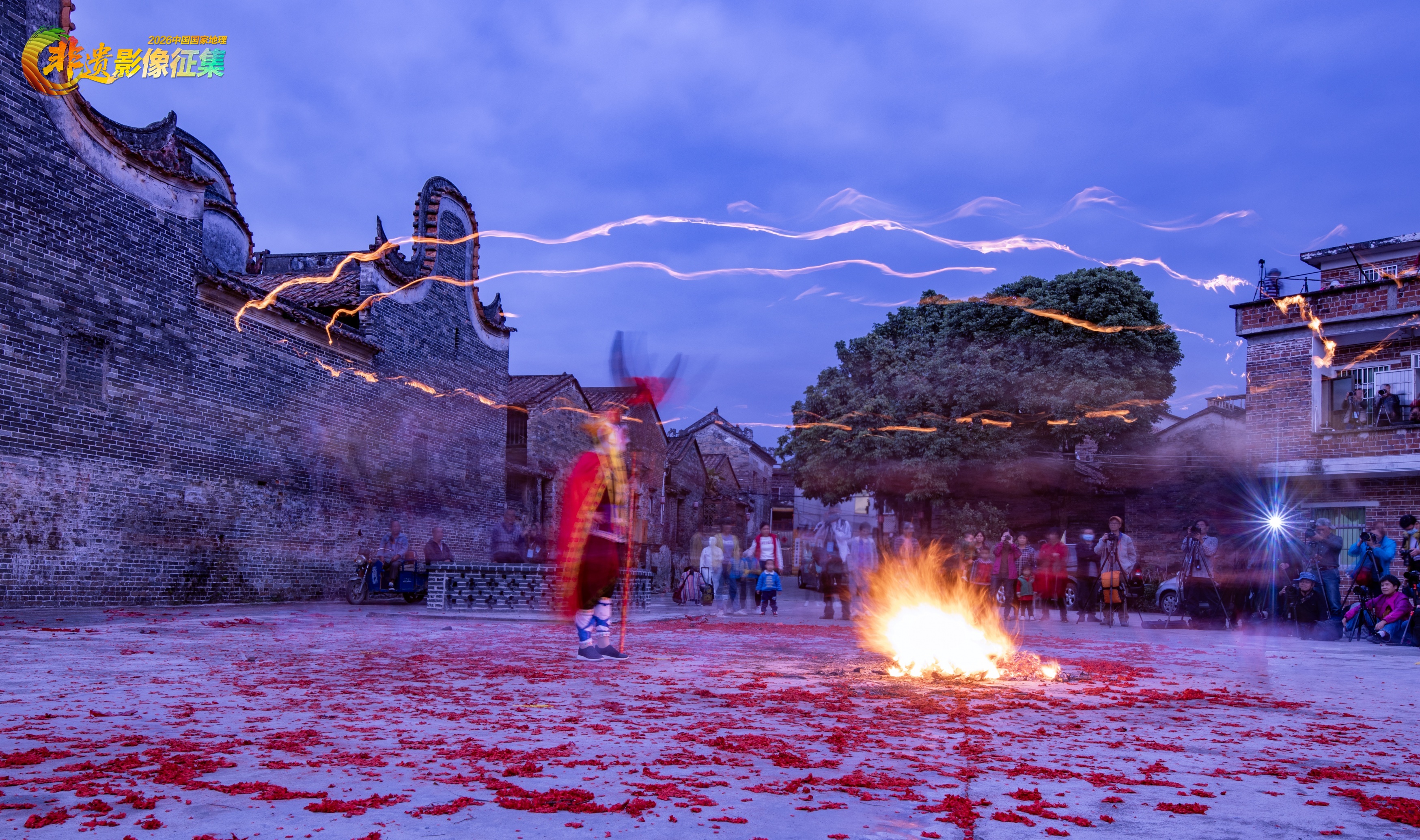 禾楼舞”是中国广东省云浮市郁南县连滩镇一带流传的一种古老民间舞蹈,被誉为岭南农耕文化的“活化石”,也是国家级非物质文化遗产(2008年被列入第二批国家级非遗名录)。场上搭建竹木禾楼,并燃起火堆。 巫师登场,唱诵禾楼歌,洒圣水祭祀天地四方。 舞者围绕火堆起舞,动作古朴、粗犷,模仿割稻、打稻等农耕劳作。 舞者会列队穿过“火门”(用竹子或稻草搭建的火堆通道),并有“拜天地”的仪式。 最后,女舞者高举稻穗,象征丰收,祈愿来年再获好收成楼舞是一种融合了神话传说、农耕信仰和原始舞蹈艺术的古老艺术形式,生动地展现了岭南地区人民对自然的敬畏和对丰收的渴望。
