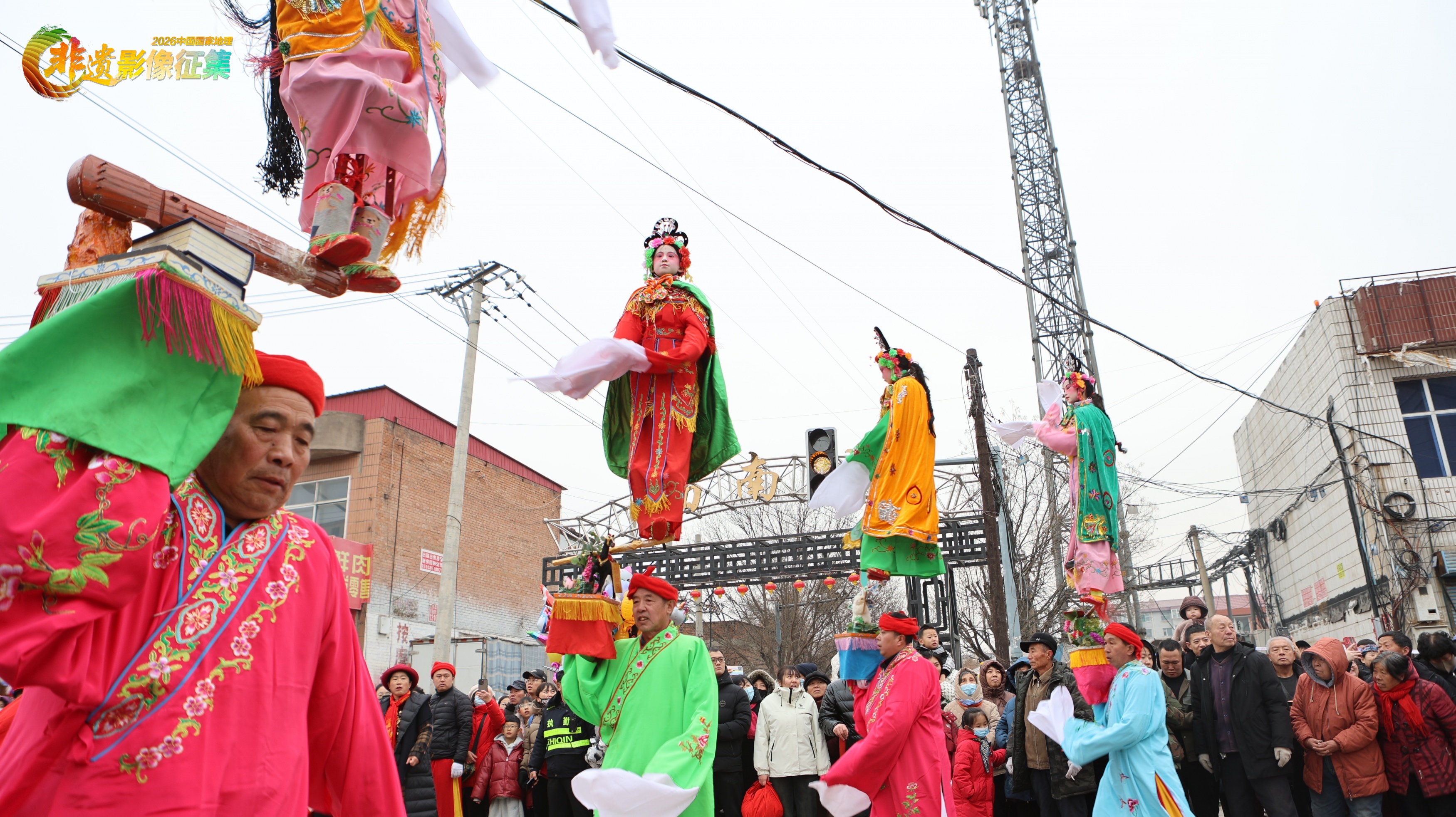 作品拍摄的是山西清徐徐沟背铁棍,第二批国家级非物质文化遗产,这项民俗艺术萌芽于金代,成型于明嘉靖年间,至今已有近500年历史,是山西社火文化的标志性代表。 画面中,成年艺人肩背特制铁架,将身着戏曲戏服的孩童稳稳托举于空中,以隐蔽的铁架结构营造出凌空悬浮的视觉奇观。上下表演者默契配合,随锣鼓节奏踏。