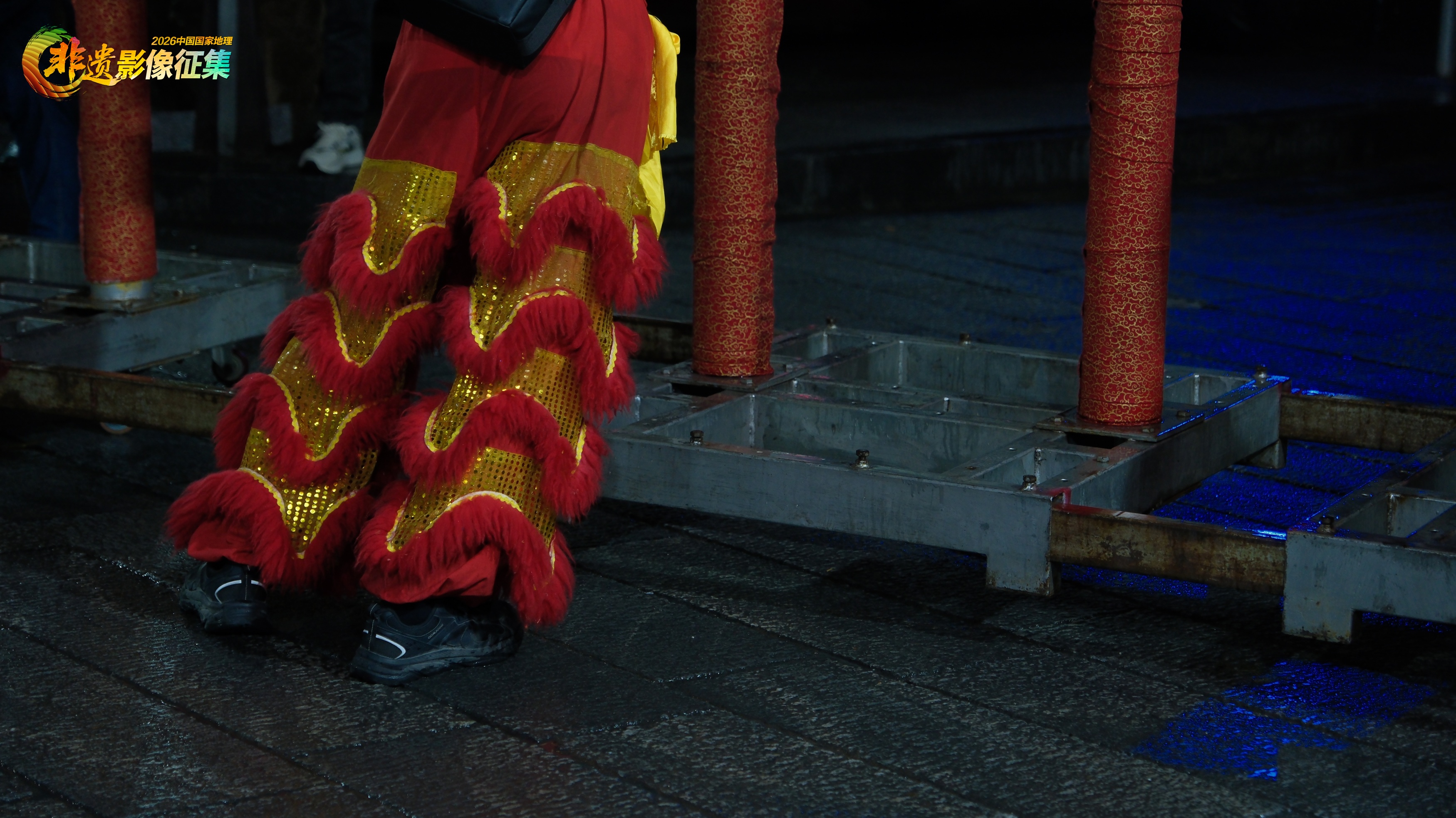 突如其来的雨是意外,更是考验。当地面、狮头、高架都被淋湿,舞者们没有取消表演,而是迅速团结一心处理突发状况,以确保演出的顺利进行。