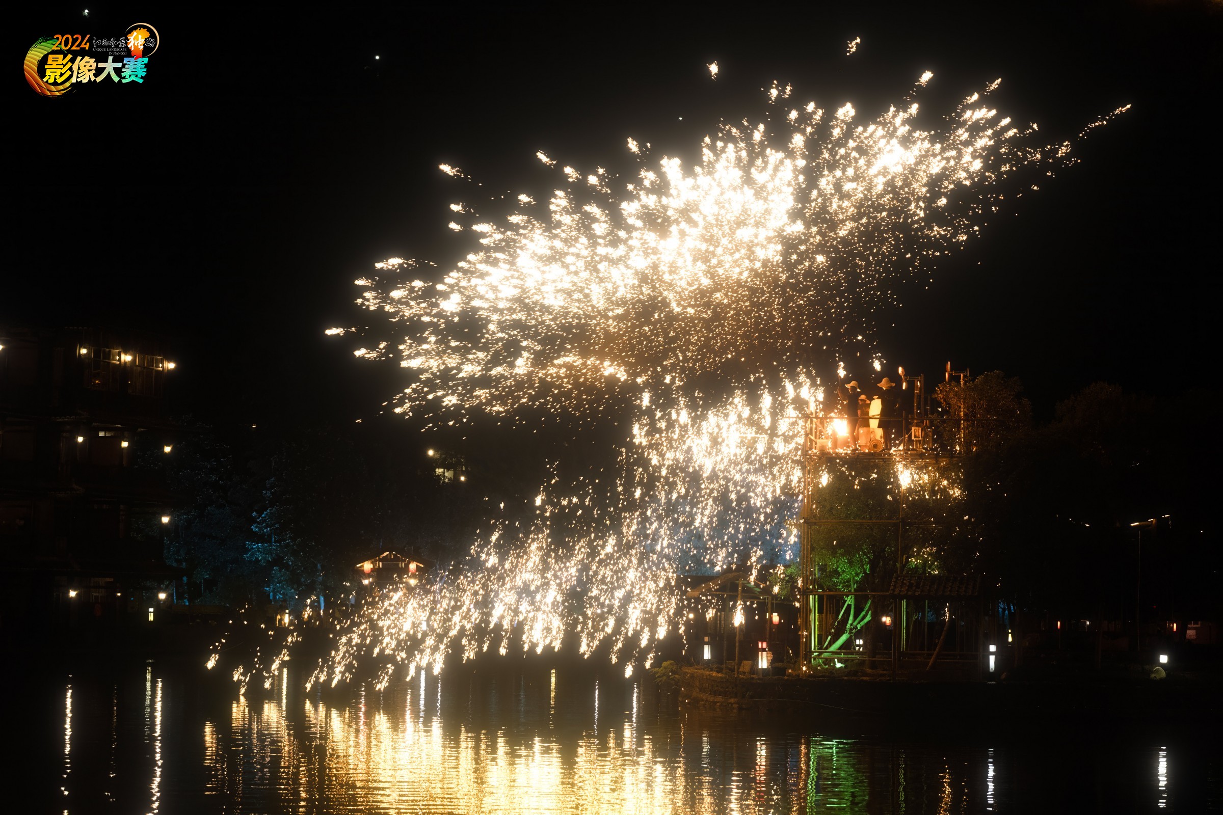 南昌怪石岭打铁花表演,飞舞的火花,犹如发光的蝴蝶在空中张开双翼