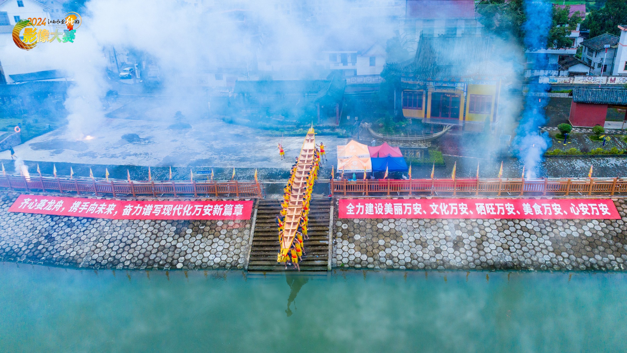 端午节黎明时分,韶口的龙舟在锣鼓鞭炮烟花齐鸣声中下水。