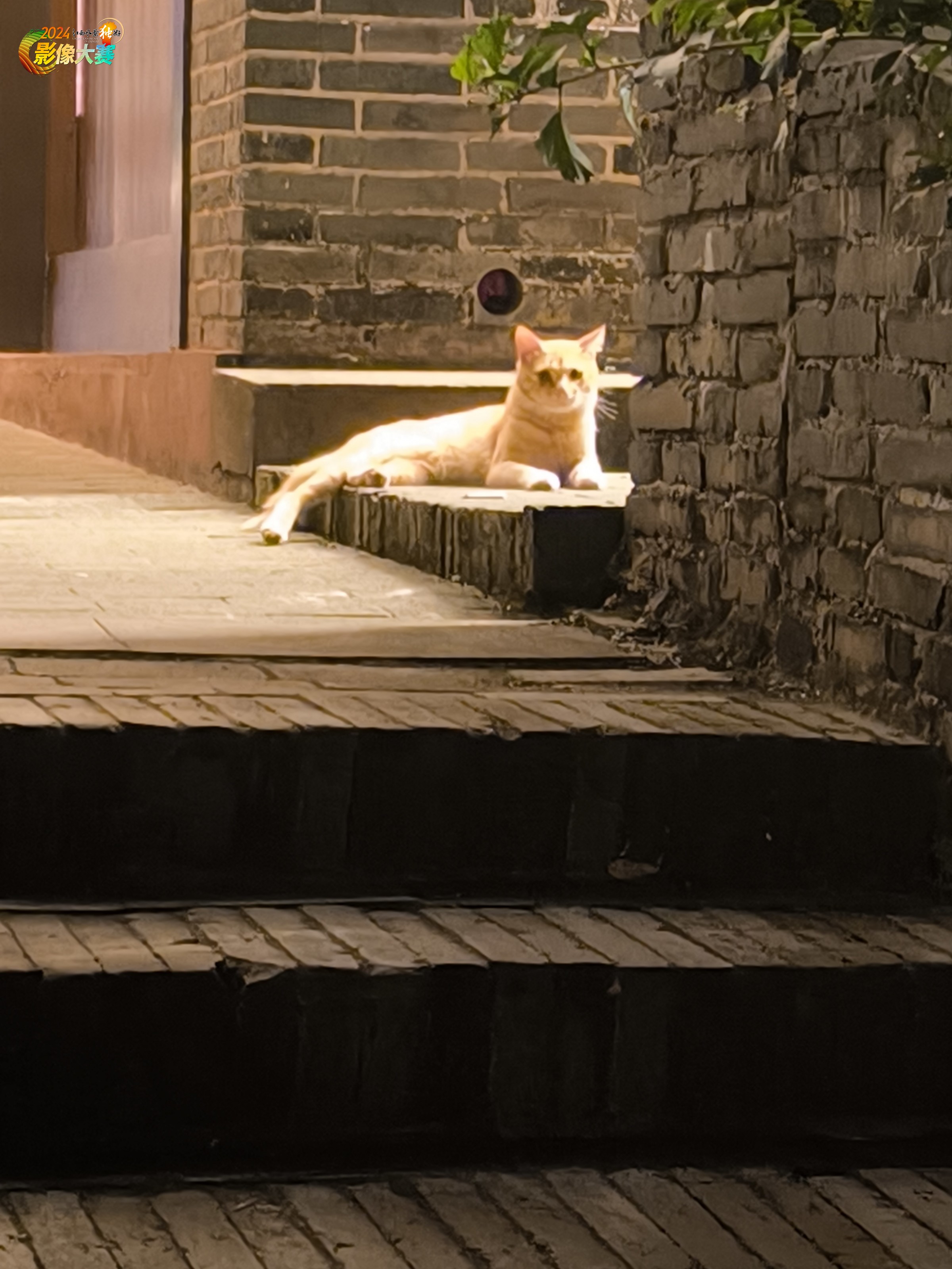 摄于历史景点郁孤台,小猫休息的慵懒与古城的慢节奏生活相呼应。