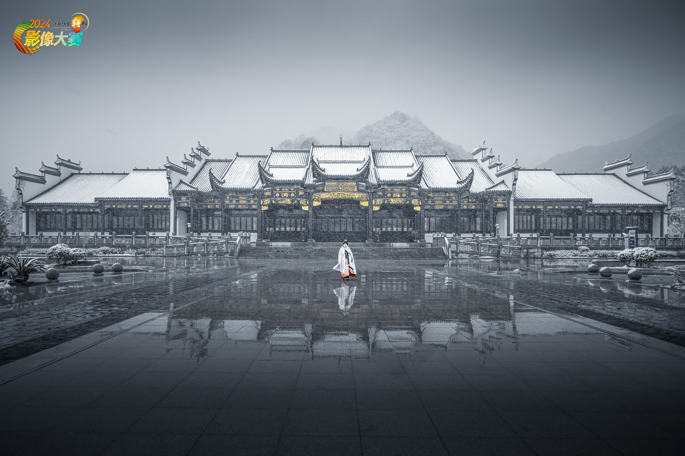 2024年1月22日,乐平迎来新年的第一场雪。雪后的古戏台景区犹如一幅水墨画般,值广场一着汉服女子正迎面而来,我迅速举起相机记录下这一刻。