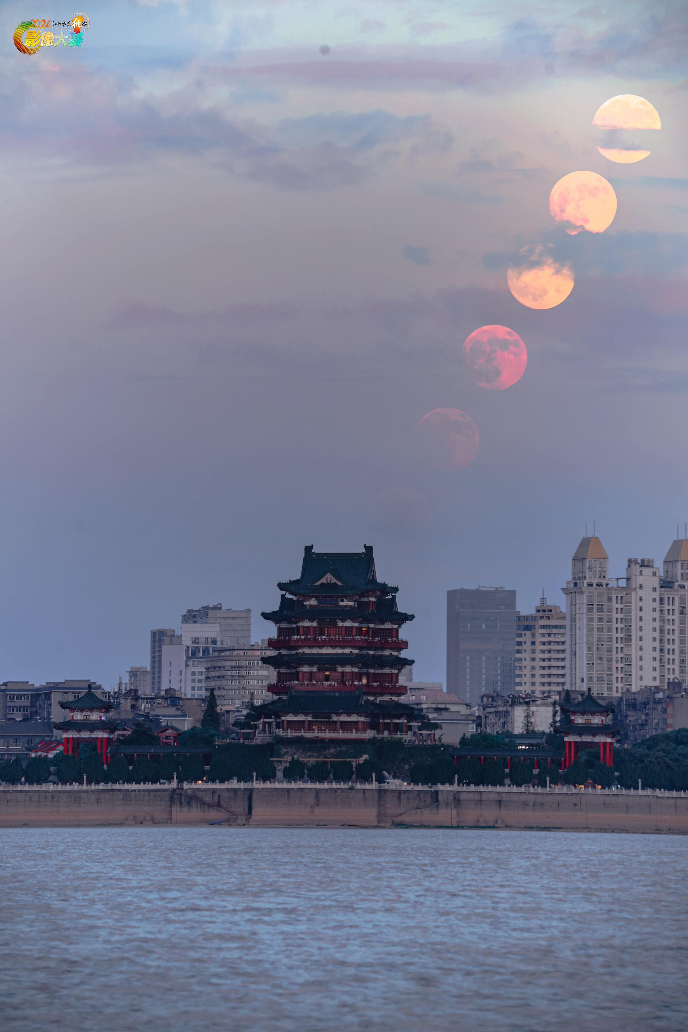 正值中秋佳节,月亮从滕王阁后方缓缓升起,与滕王阁交相辉映,美不胜收