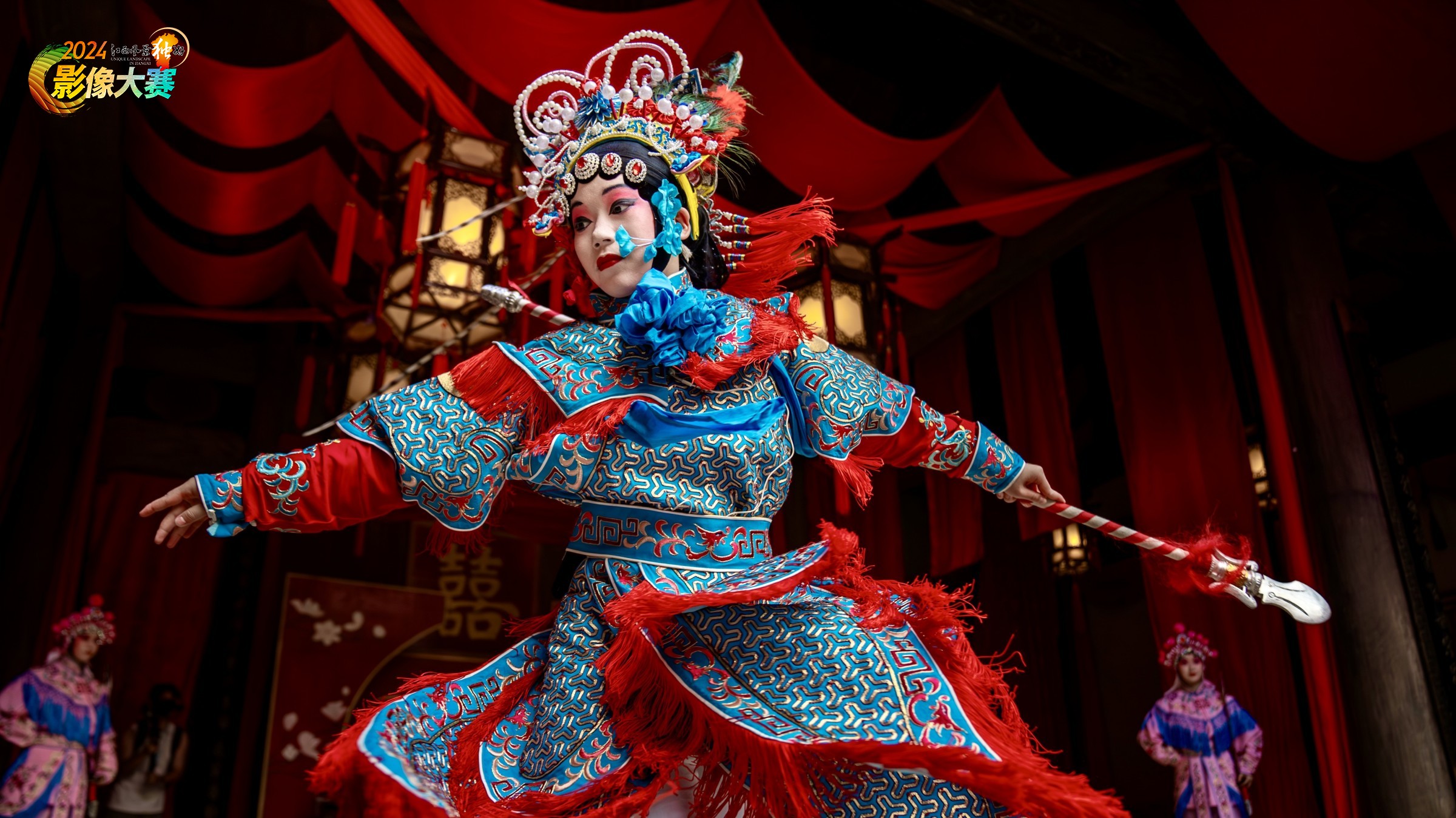 这张照片捕捉了赣剧表演中的一个精彩瞬间,演员身着华丽的戏服,身姿优雅,眼神灵动,仿佛将观众带入了一个充满梦幻与韵味的戏曲世界。光影交错间,赣剧的独特魅力被完美展现,让人感受到戏曲艺术的无穷魅力。