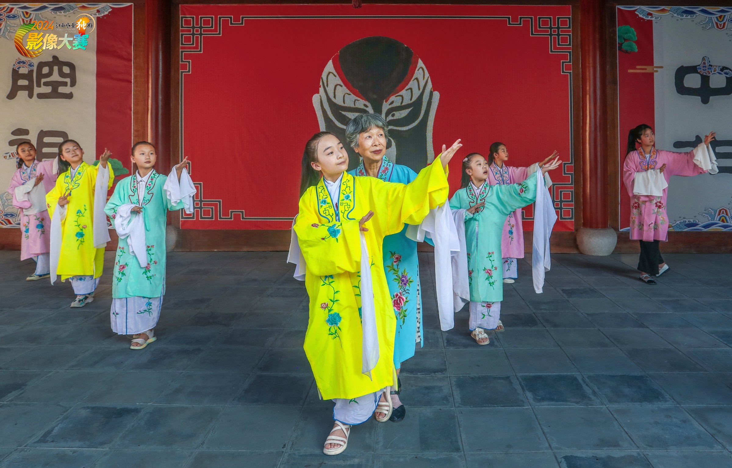 弋阳腔国家级非遗传承人林西怀在弋阳县校园内指导学生练习。