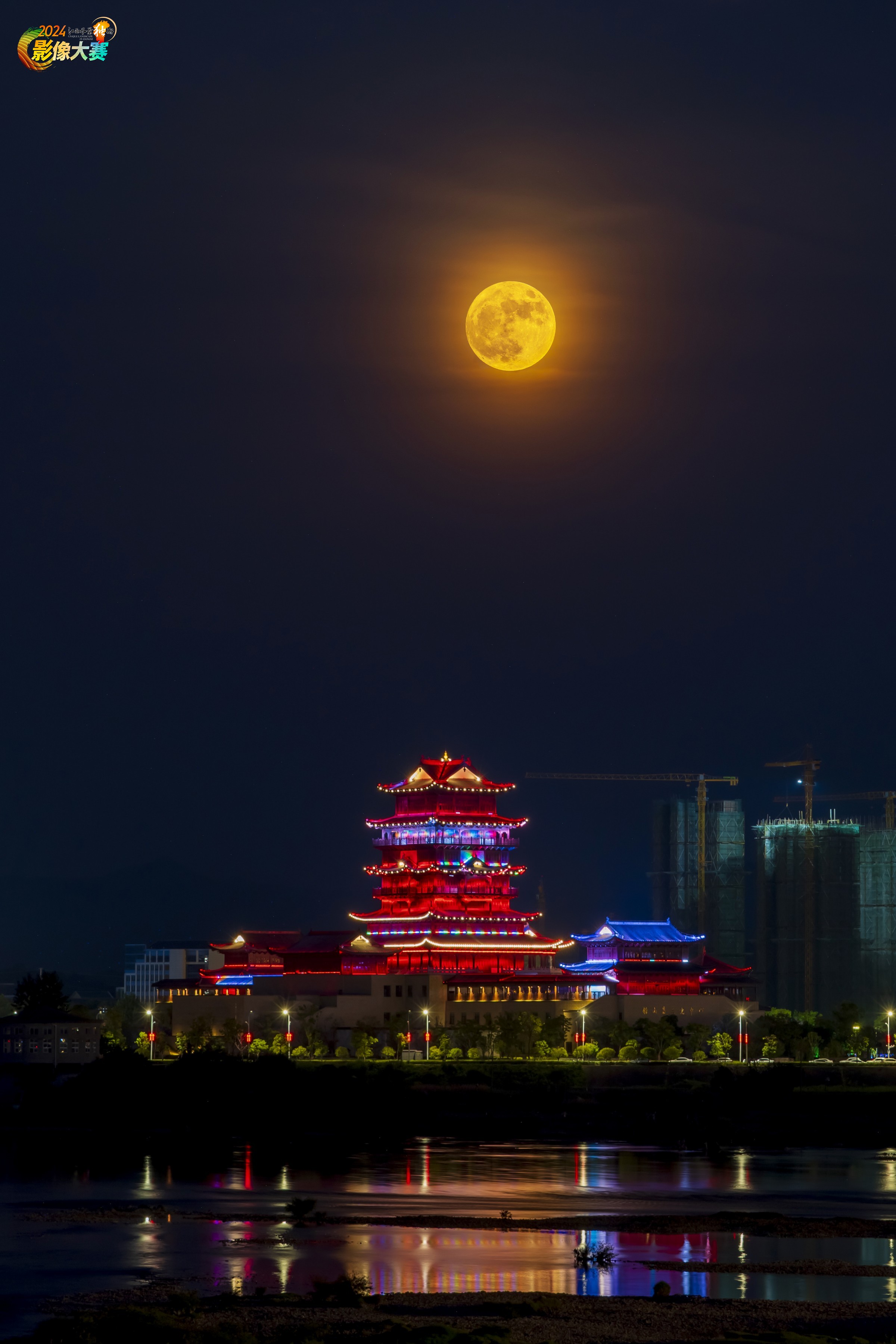 十五的月亮映衬下,铅山县武夷阁灯光璀璨,更有古韵。