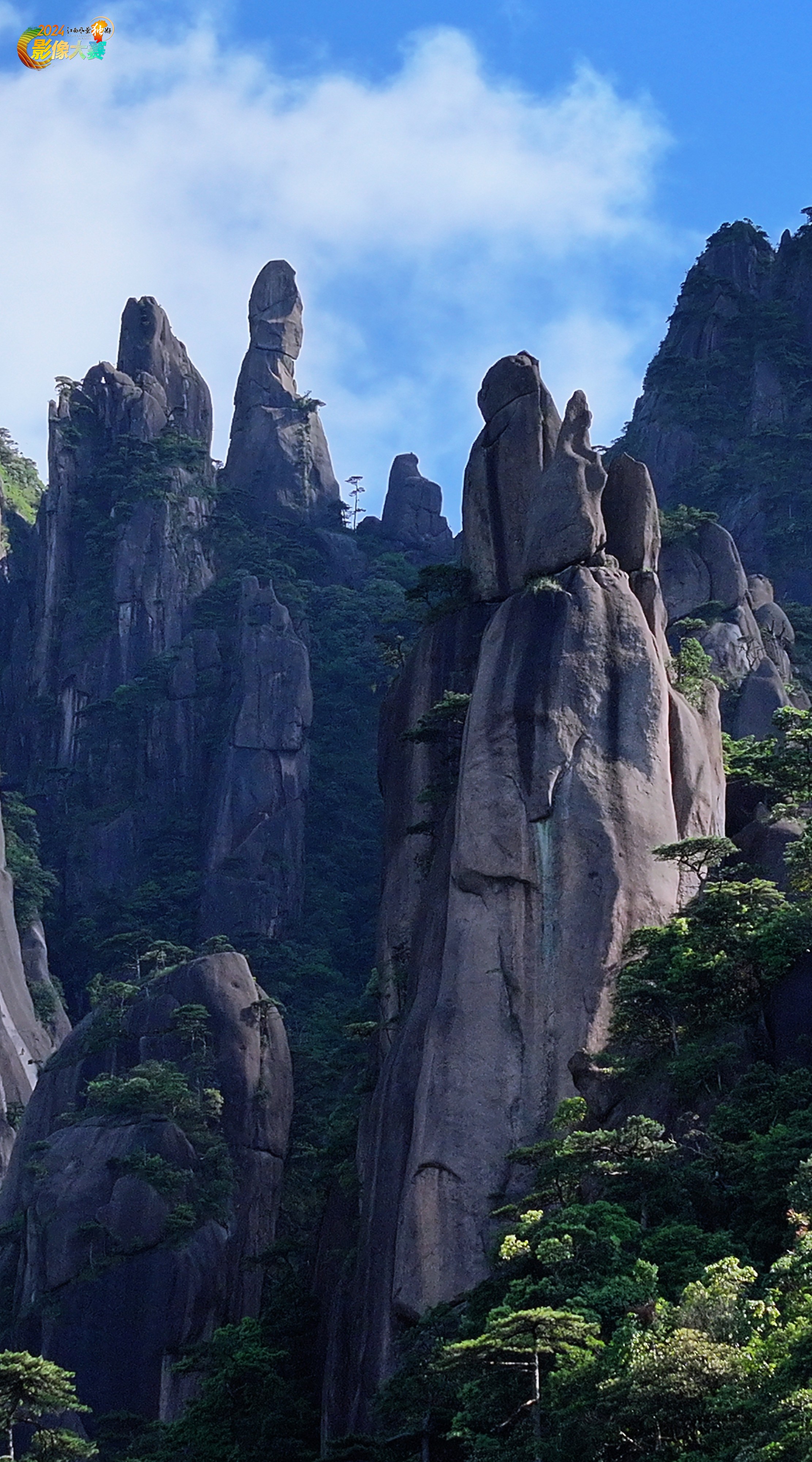 三清山众多的象形石是天下一绝,栩栩如生的让人叹服。这幅照片好似观音坐在山中在听一个老道在弹琵琶。