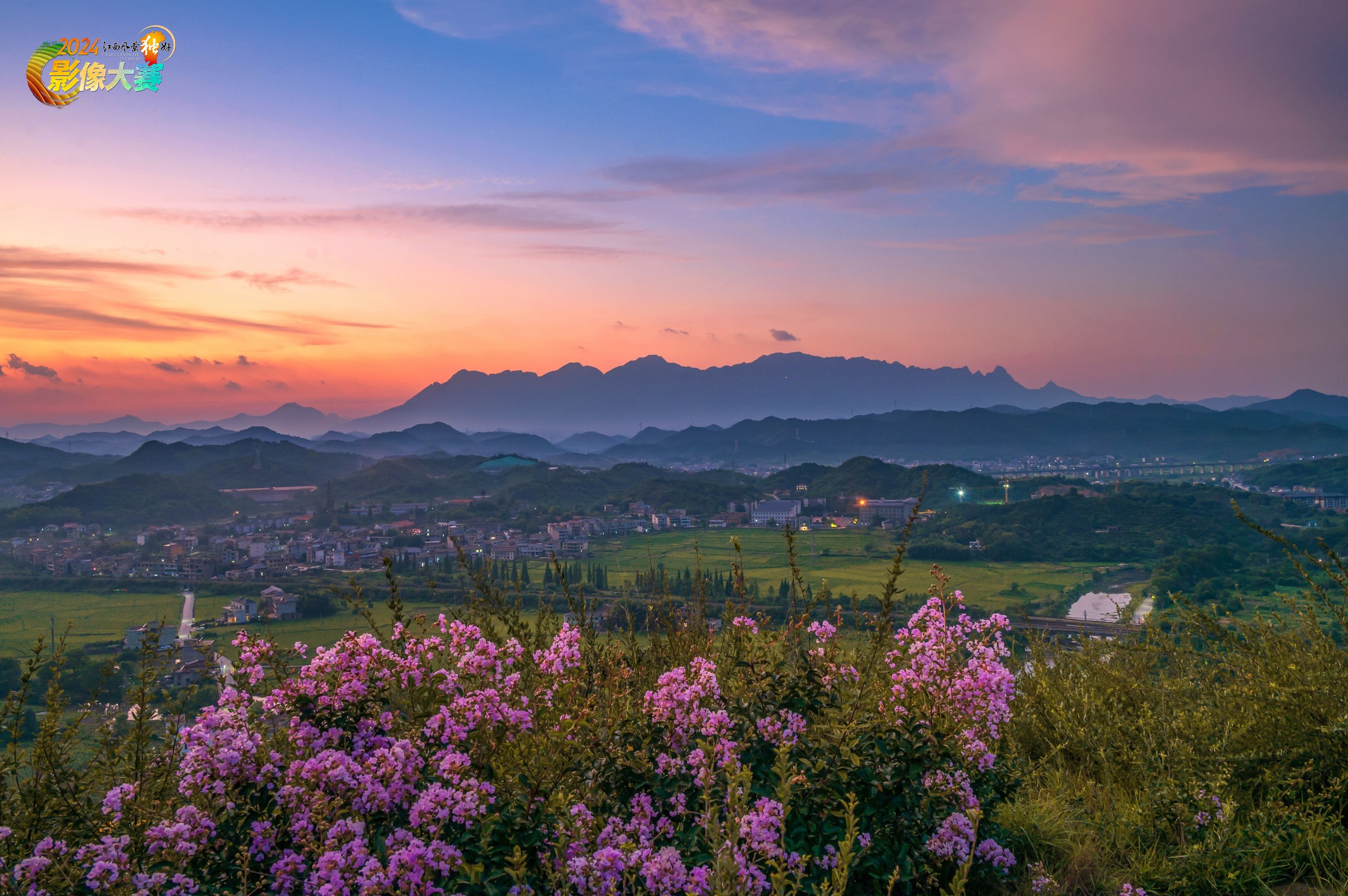 灵山地处江西省上饶市广信区北部,被道家书列为“天下第三十三福地”。因山脉连绵起伏犹如一位侧躺着入睡的江南美女而被世人赞誉为“睡美人”。在城区月亮山上,远眺灵山,灵山就如“睡美人”。山峦起伏,拔地而起,一众群山环绕,就像记忆深处的山水彩画。不远处村庄灯火点点,良田金黄待收,高铁、高速穿境而过,一派祥和之气。近处,虽处初秋,却有繁花点点,装饰画面。真是眼前皆美景,当下即良辰。