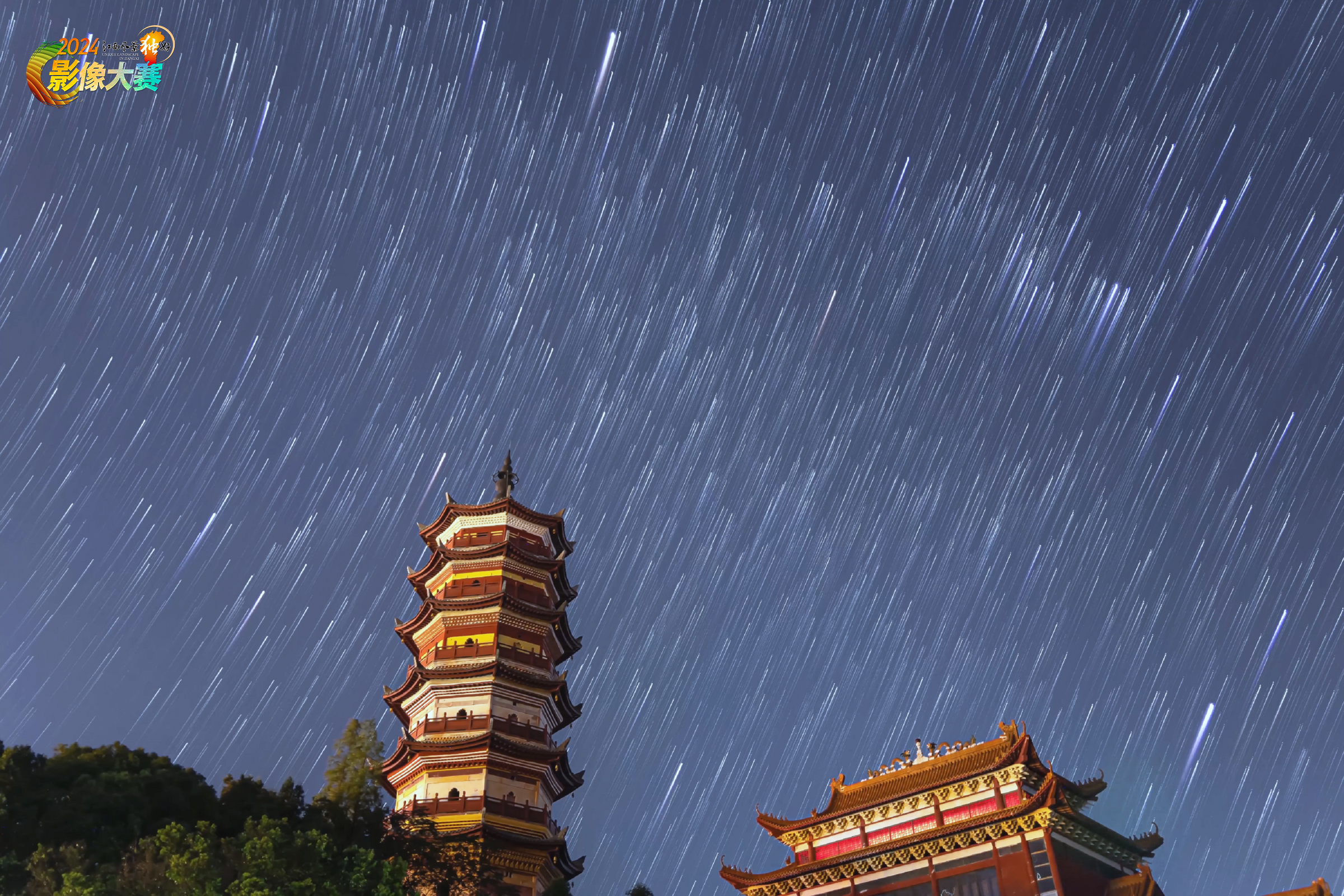 拍摄于宁都水口塔,古色古香的宝塔与星光的合影,一静一动