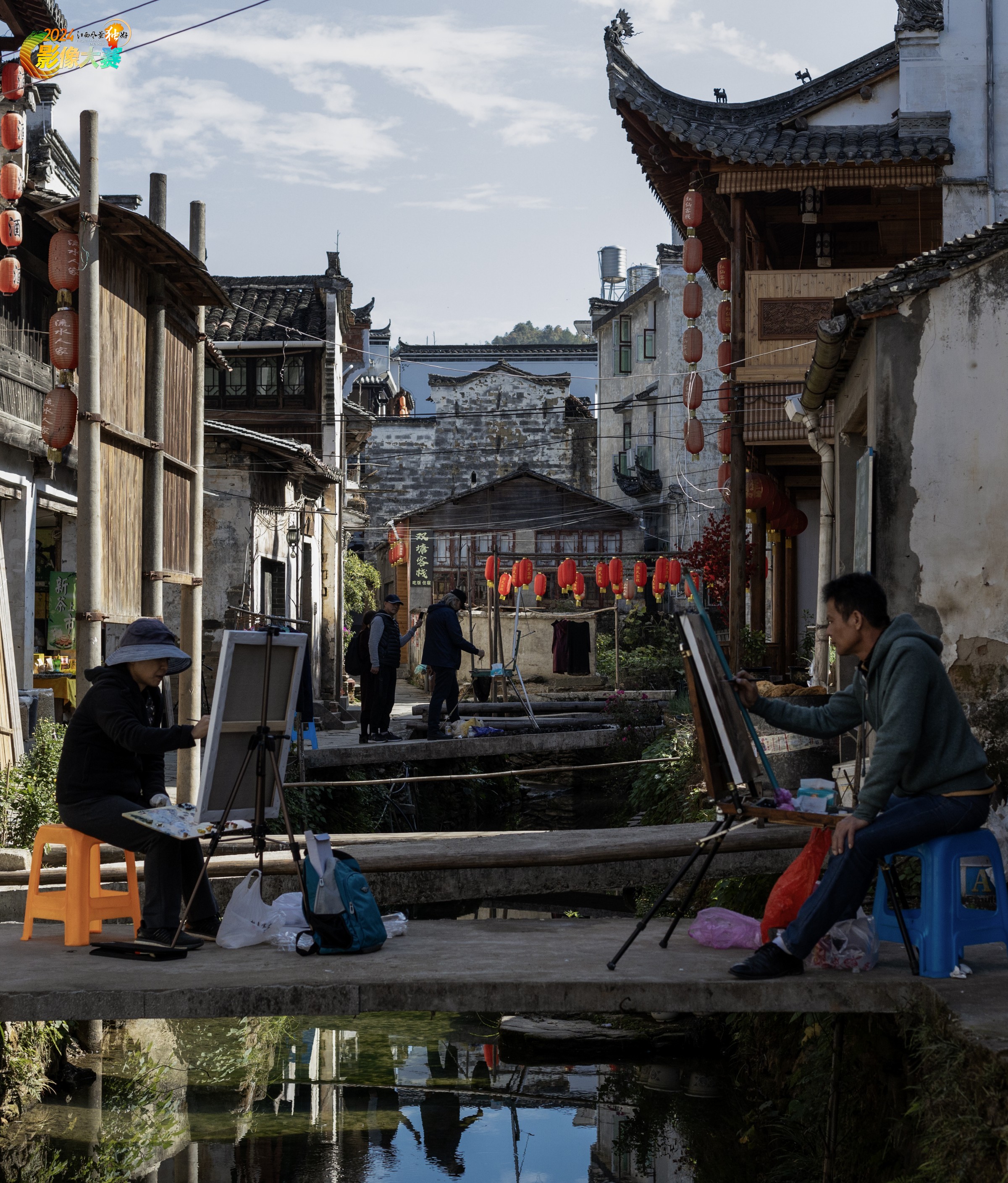 2019年11月1号,拍摄江西省上饶市婺源县, 李坑景区,油画家在绘画古镇。