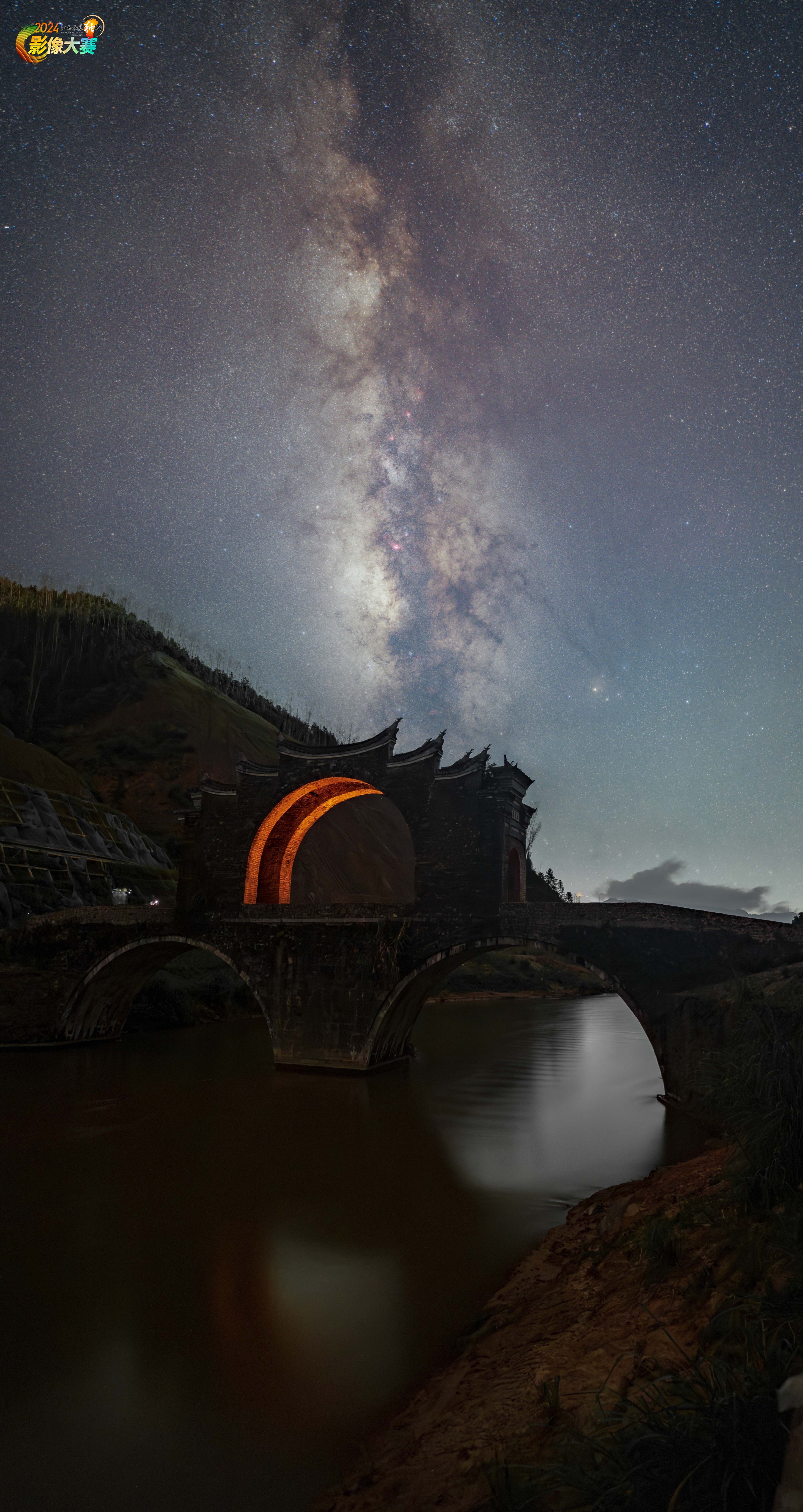 太平桥,位于江西省赣州市龙南市杨村镇车田村塘尾自然村边的太平河上,横跨太平河两岸,始建于明正德年间,系南赣巡抚王守仁(阳明)为纪念平定“三浰”而建,后损毁。现桥于清嘉庆元年(1796年)由赖氏宗亲选址重建。夜晚的太平桥之上,银河竖直于太平桥