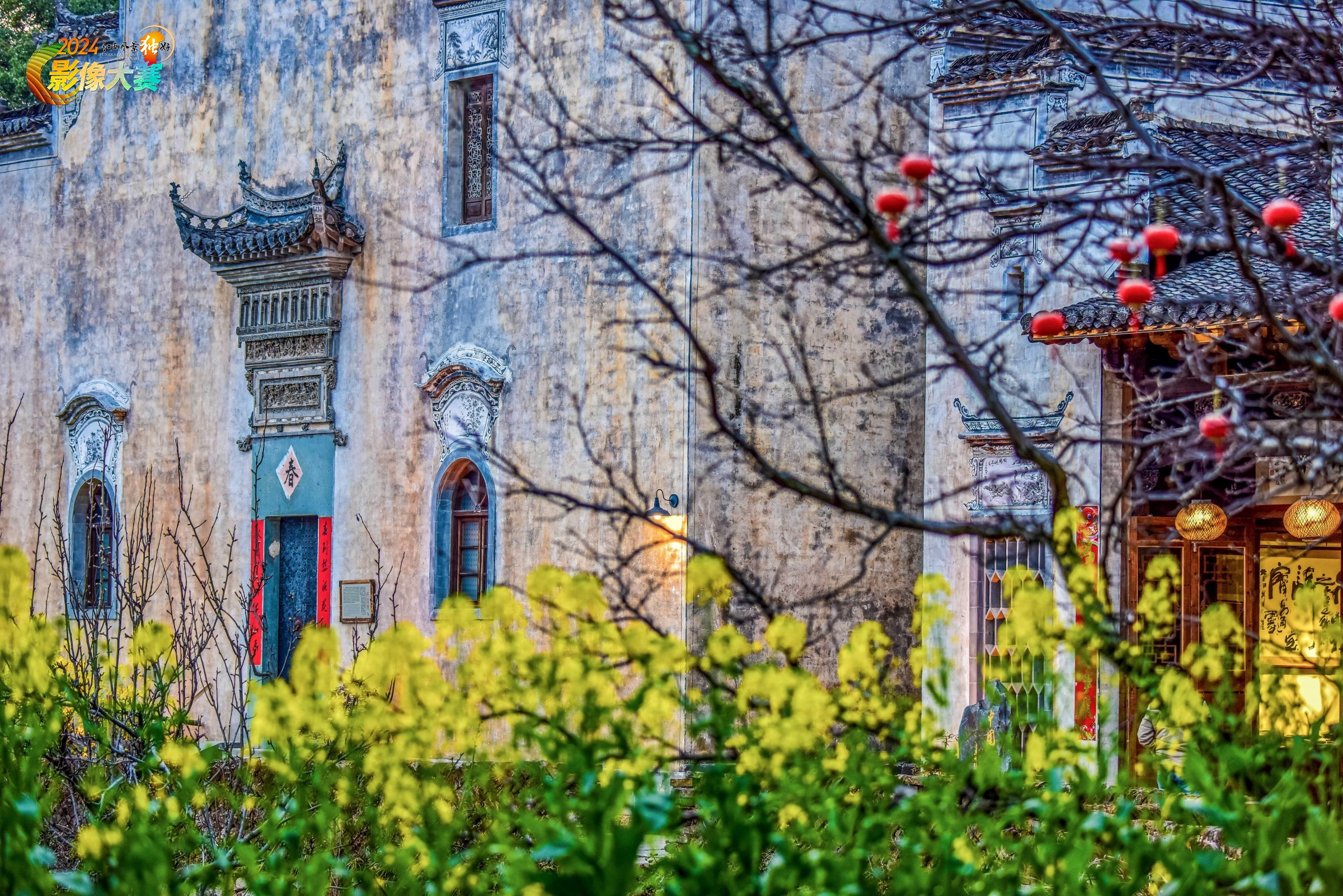 新春时节,一座多年的老宅门前,在盛开的油菜花和对联、彩灯的映衬下,迎来了新的一年。