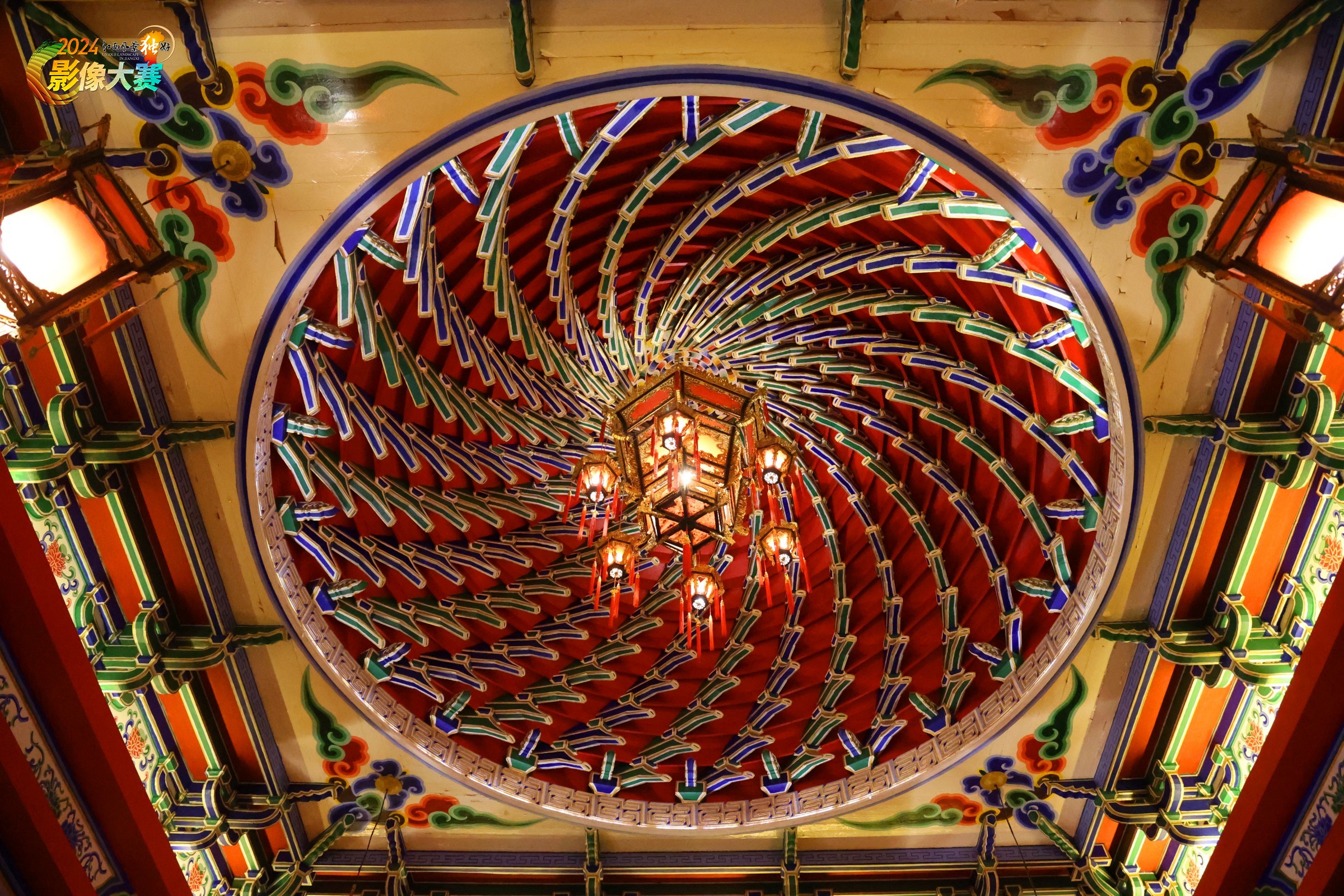 <精神图腾>采用垂直向上的极致仰角拍摄,精确毫厘不差的手动聚焦,将藤王阁内景古建"藻井"描写得纤毫毕现.
