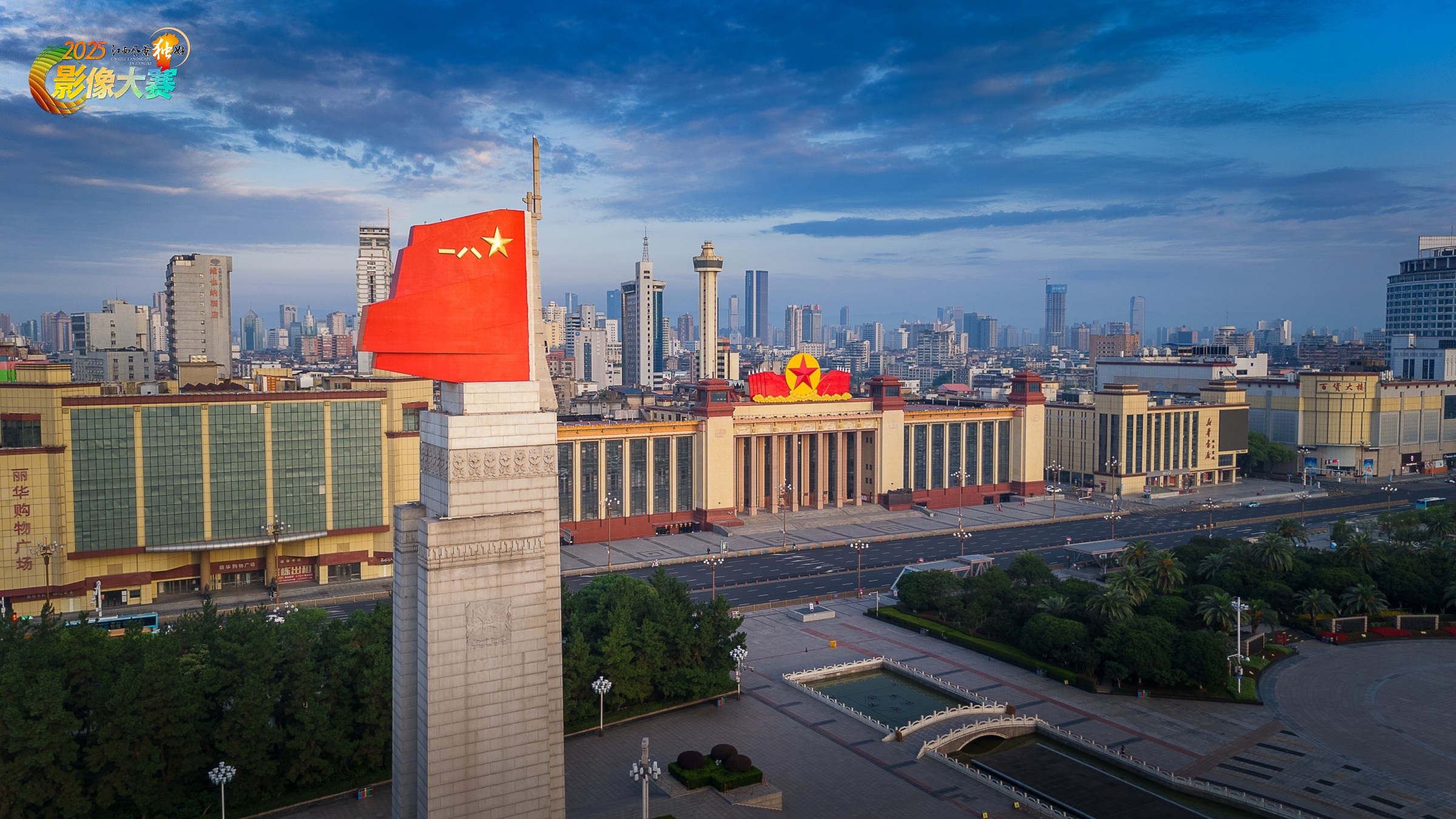 镜头定格在清晨的八一广场,恰好撞入最温柔的蓝调时刻 —— 天空晕染着一层朦胧的靛蓝,褪去了深夜的沉寂,却尚未迎来朝阳的炽热,为这片承载着厚重历史的土地,裹上了几分静谧与庄重。前景的八一纪念碑巍然矗立,碑身线条硬朗挺拔,其上的星星标识极其耀眼,又透着坚定的力量,似是在默默诉说着那段烽火岁月;视线移向主体,江西美术馆的建筑轮廓清晰可见,墙面印有的星星与纪念碑的星遥相呼应,一刚一柔、一竖一横,在蓝调的映衬下构成 “双星” 的巧妙画面,让 “双星破晓” 的意境悄然落地。随着天色渐亮,仿佛下一秒朝阳便会冲破蓝调,让 “双星” 在晨光中更显璀璨,也让这片广场迎来新的生机,既藏着构图的巧思,更满含对历史的敬意与对晨光的期待。
