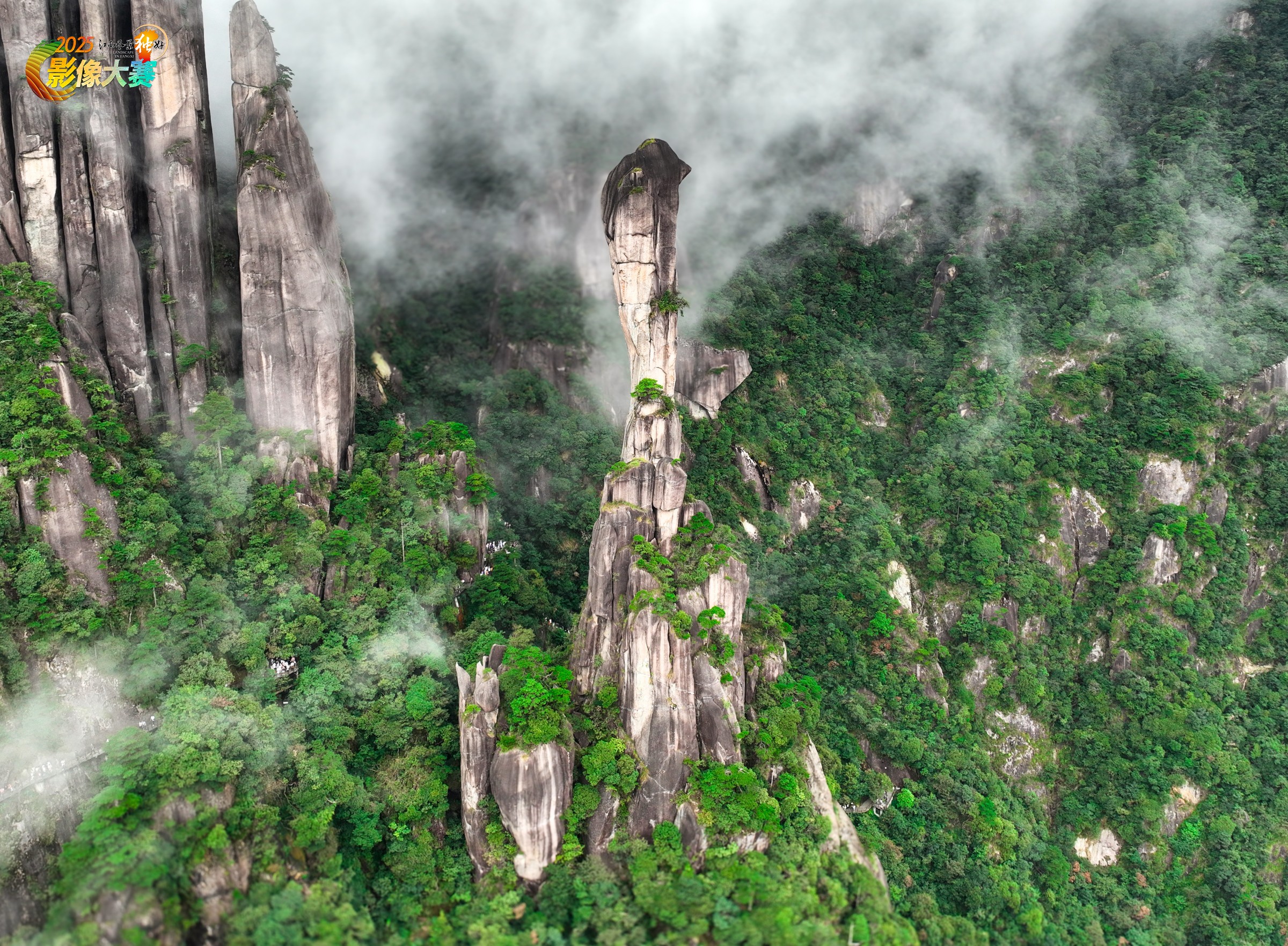 雨雾缭绕的三清山,巨蟒峰忽闪忽现