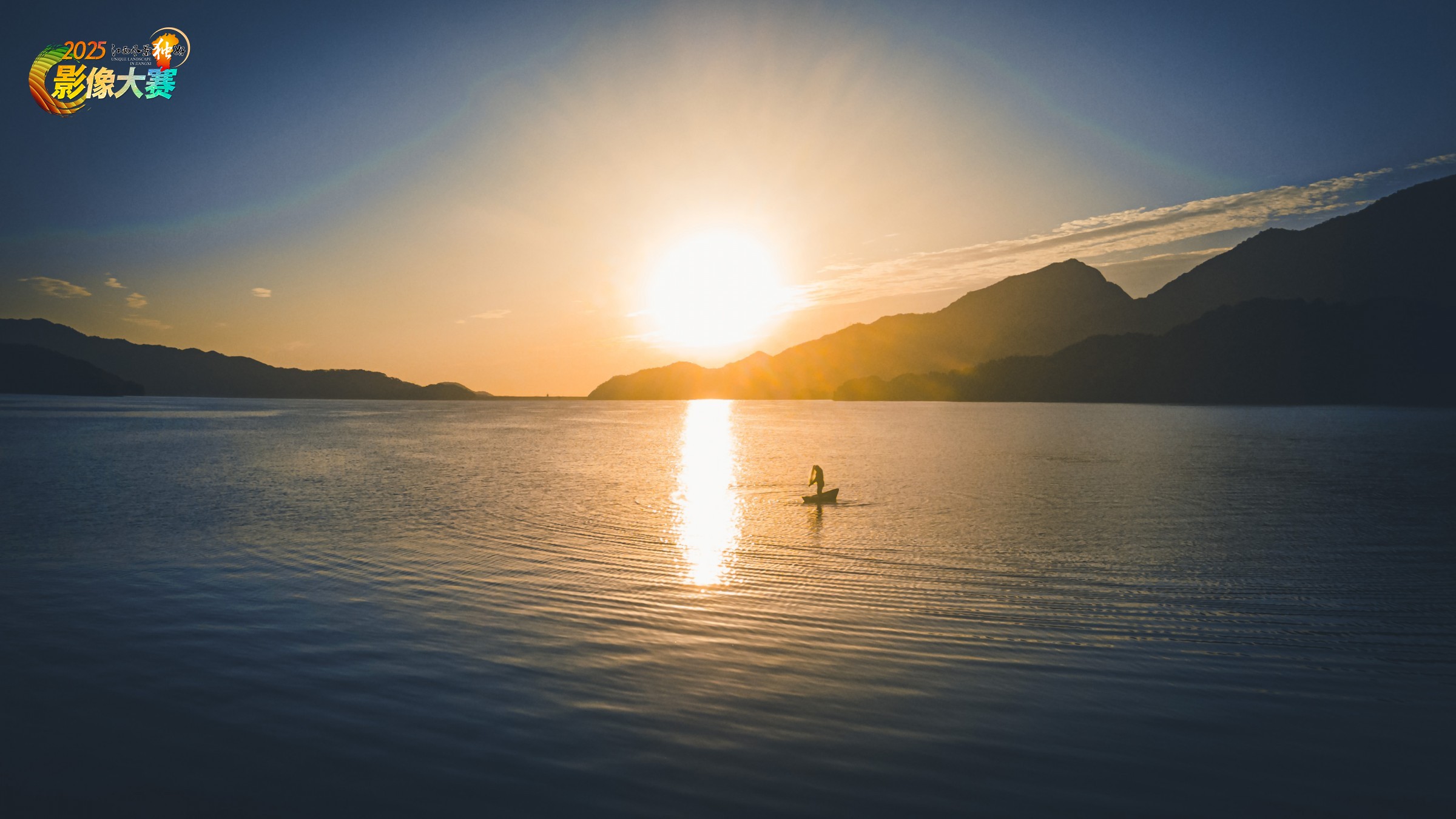 清晨的阳光,西海的捕鱼人划着小船去收网。