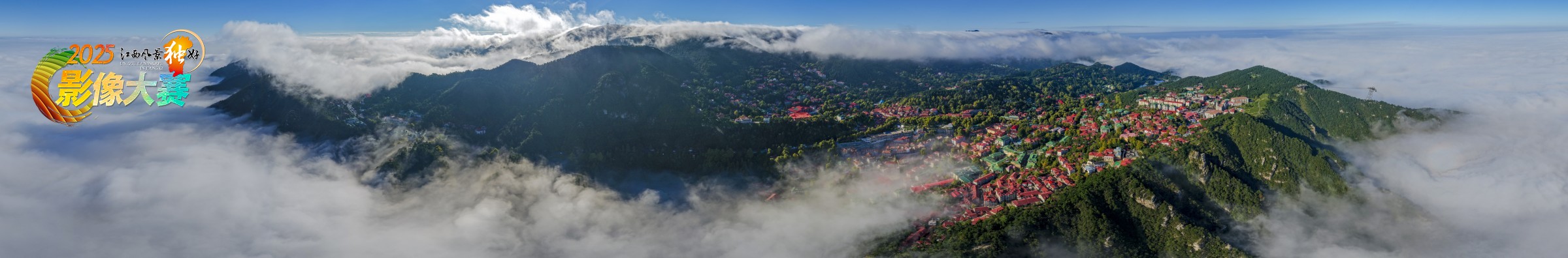 这张航拍全景图展现了庐山牯岭镇在清晨8点的云海奇观与山城风貌,是自然与人文交融的绝美画卷。 画面中,牯岭镇如一颗翡翠镶嵌在庐山群峰之间,红顶建筑错落于葱郁山林,在晨光下焕发生机。四周云海如万顷棉絮,将山峦半掩其中,部分山峰冲破云涛,与湛蓝天空相接,阳光穿透云层洒下,给云海镀上一层金边,光影交错间,尽显“云中山城”的空灵与壮阔。 牯岭镇作为庐山的核心景区,因独特的地理气候,时常被云海环绕。这幅画面不仅呈现了牯岭镇的建筑特色与山林生态,更通过云海的磅礴、天光的澄澈,诠释了庐山“匡庐奇秀甲天下”的神韵,仿佛一幅立体的山水长卷,让观者沉浸式感受山城在云海中苏醒的静谧与壮美,也彰显了庐山作为避暑胜地和自然奇观地的独特魅力。