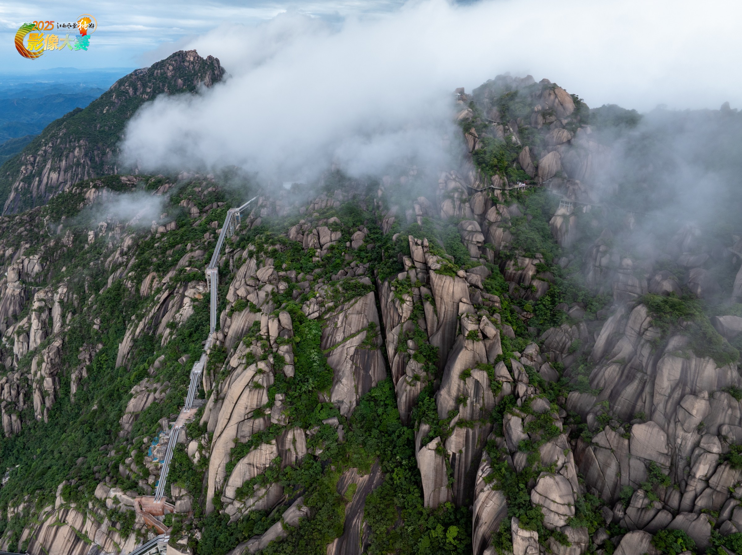 上饶灵山,云雾缥缈,电梯直通云端。