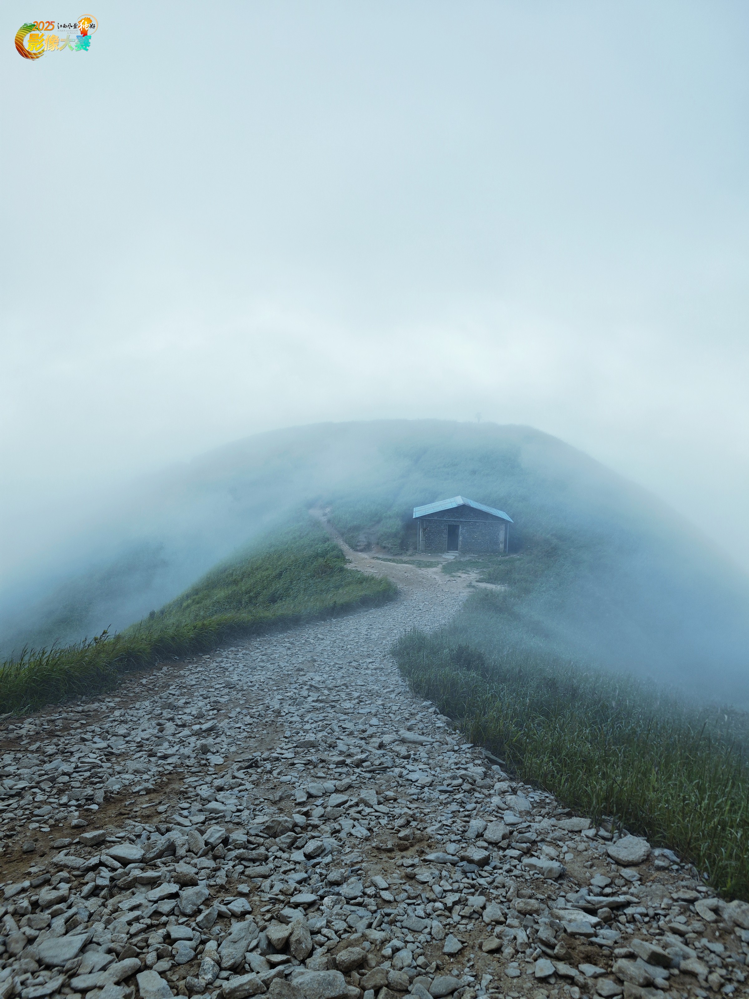 《孤屋隐雾,山径诉闲》作品说明 那是武功山清晨的雾,浓得像化不开的心事,却又轻得能被山风揉碎。作为一名大学生,我背着行囊在崎岖山路上跋涉了许久,汗水浸透衣衫,双腿似灌了铅,每一步都踩着碎石的“吱呀”声,那是独属于武功山的“倔强”。 当我挣扎着登上那段陡坡,云雾忽然为我掀开一角帘幕——碎石径蜿蜒着,把我的目光引向那座孤屋。它静立在雾里,像一位等了岁月许久的故人,灰石的墙、蓝顶的檐,在朦胧中藏着数不清的故事。山风穿过门缝,似在低诉山间的晨昏,雾霭缠绕屋角,又像在为它编织一件隐身的衣。 我按下快门的瞬间,忽然懂得,那些跋涉的艰难都成了伏笔。这孤屋不是孤独,是山野的温柔停泊;这雾不是阻隔,是自然的诗意留白;这山径的每一块碎石,都在诉说着无数徒步者的坚持与闲心。它是武功山给我的礼物,是我在青春徒步路上,与一场雾、一间屋、一段路的深情相拥,往后每次回望,都能听见山风里传来的,属于那个清晨的动人回响。