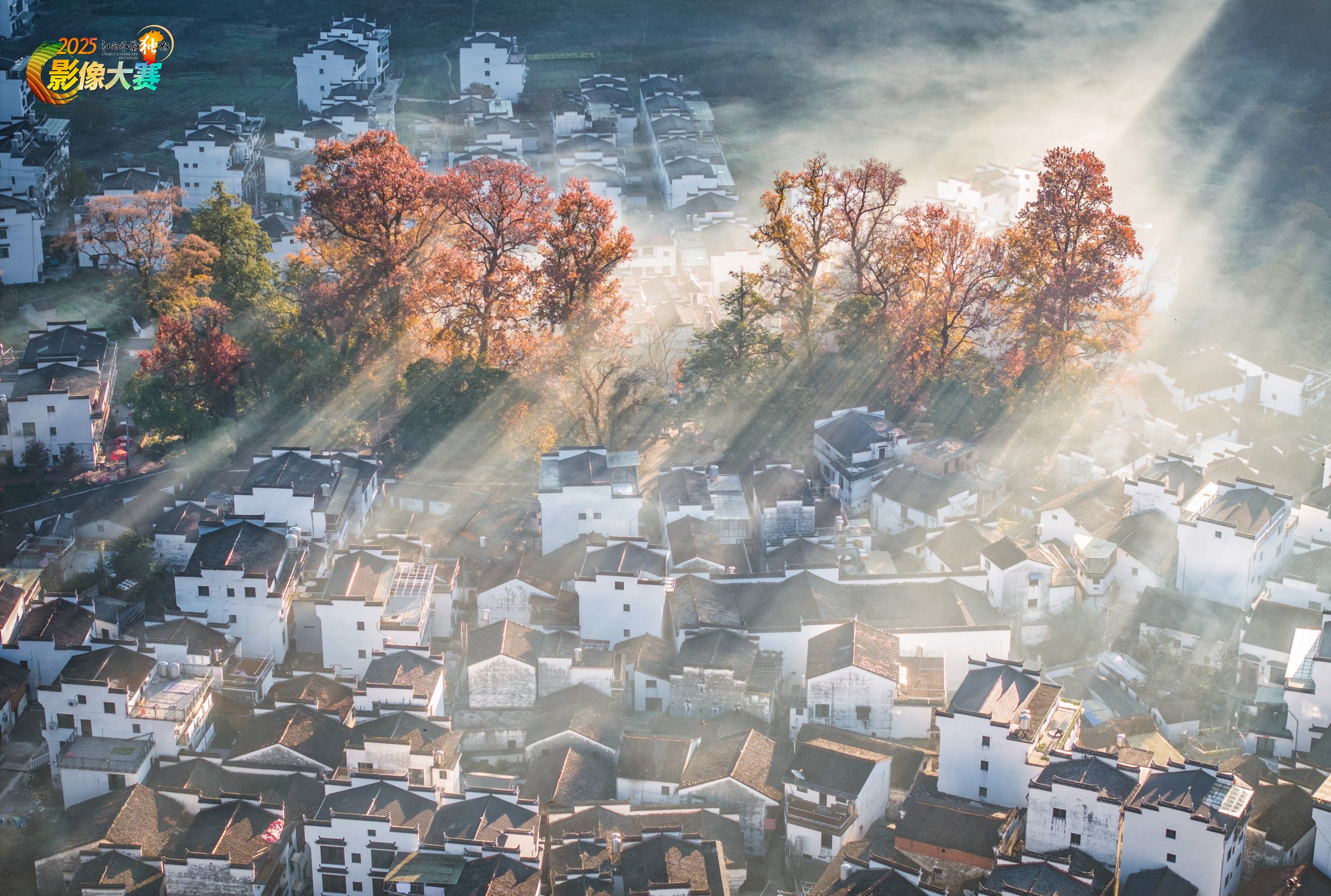 《雾漫徽村,金缕画秋居》