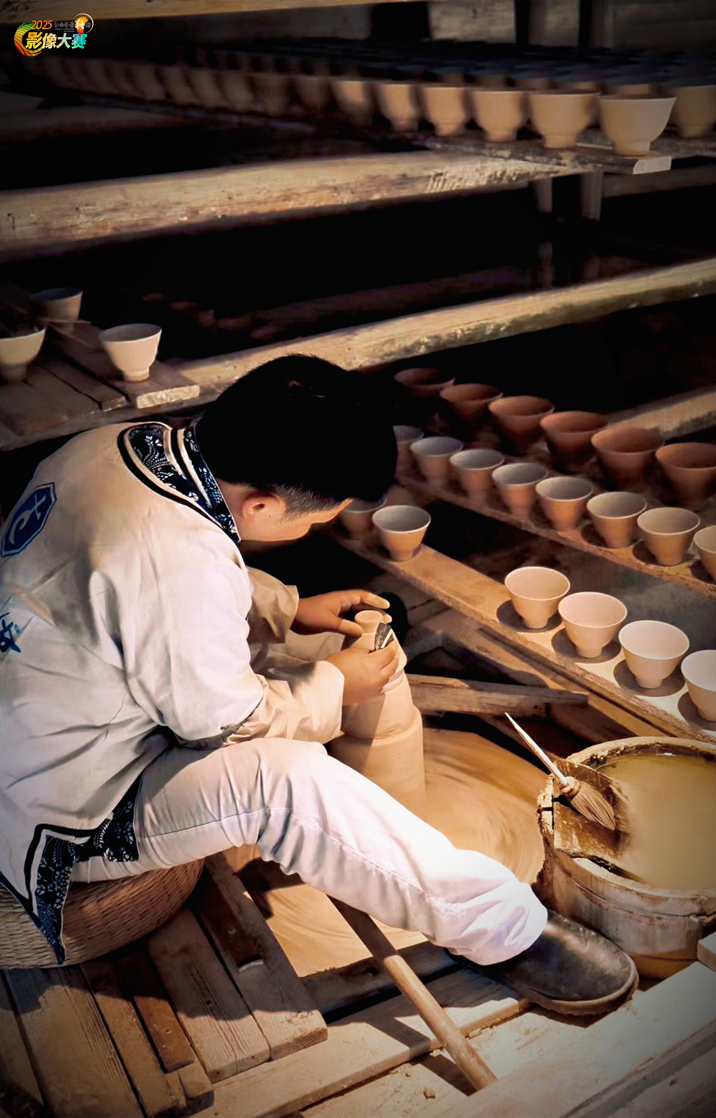 在古窑厂里,老师傅们沉下心来,细细的雕刻着每一件艺术品。