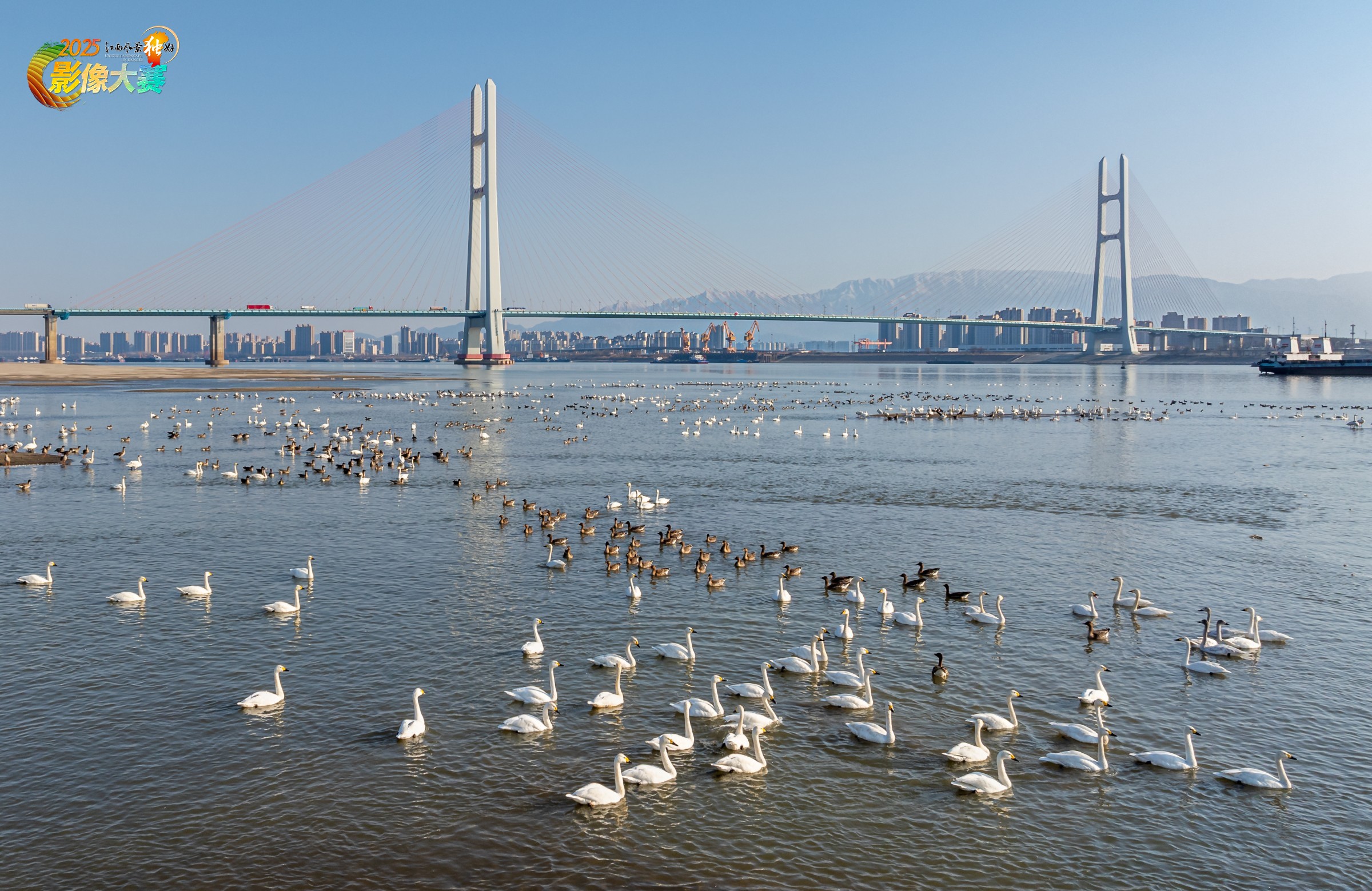 江西九江市长江段生态环境十分优美。位于九江市郊城子镇长江段的江心洲每年都有大量的候鸟来此越冬,这里成了一道壮丽的景观。