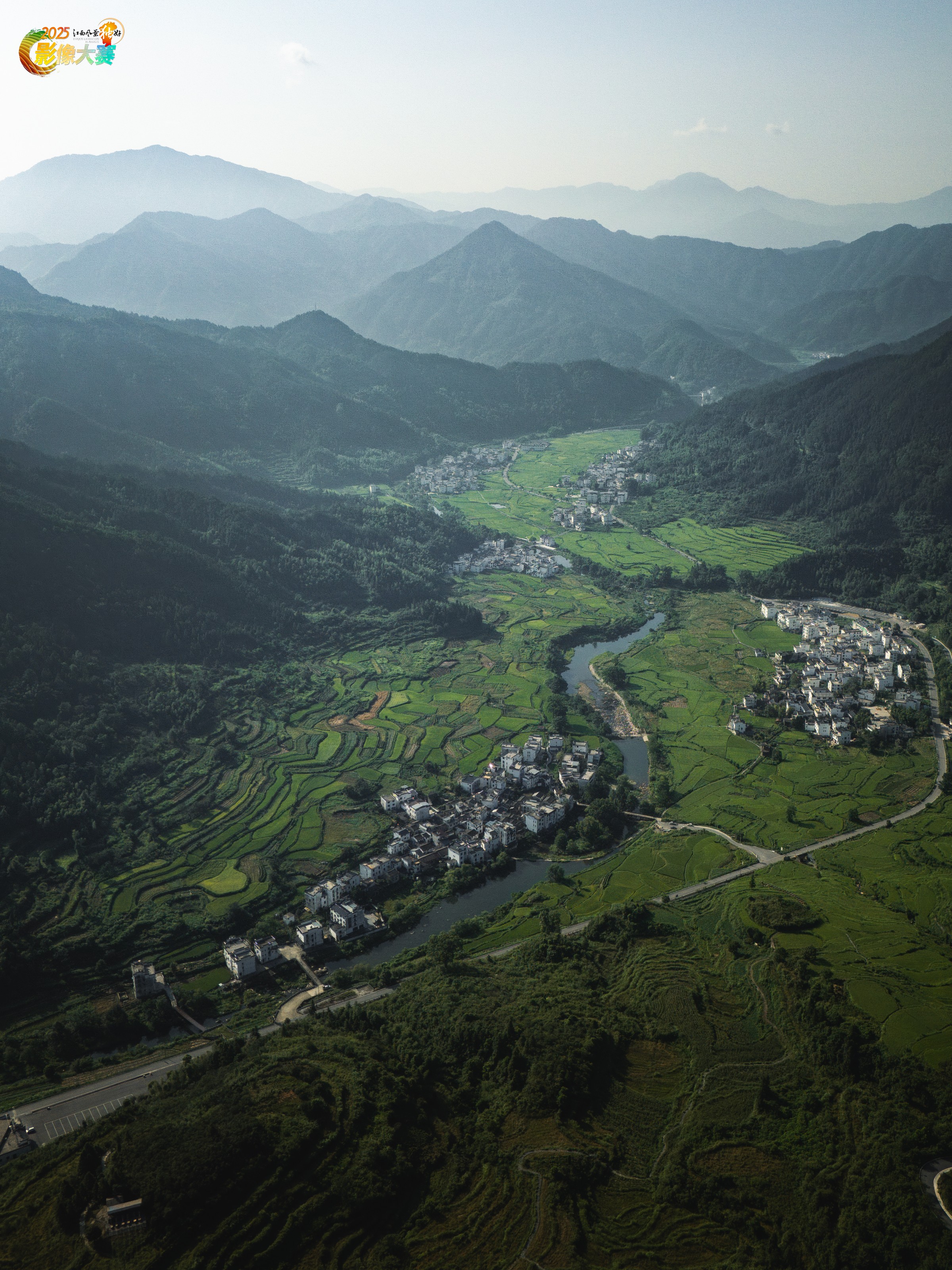 拍摄于婺源的一个村庄。坐落于山水环抱之中的村落,白墙黛瓦错落有致,典型的徽派建筑风格尽显古朴与典雅。晨光洒落在屋顶上,与周围的自然景色相互映衬,勾勒出宁静祥和的乡村生活画面。整个场景宛如陶渊明笔下的世外桃源,远离尘世的喧嚣,充满了诗意与宁静,展现出婺源独特的田园之美和深厚的人文底蕴,让人不禁心生向往。