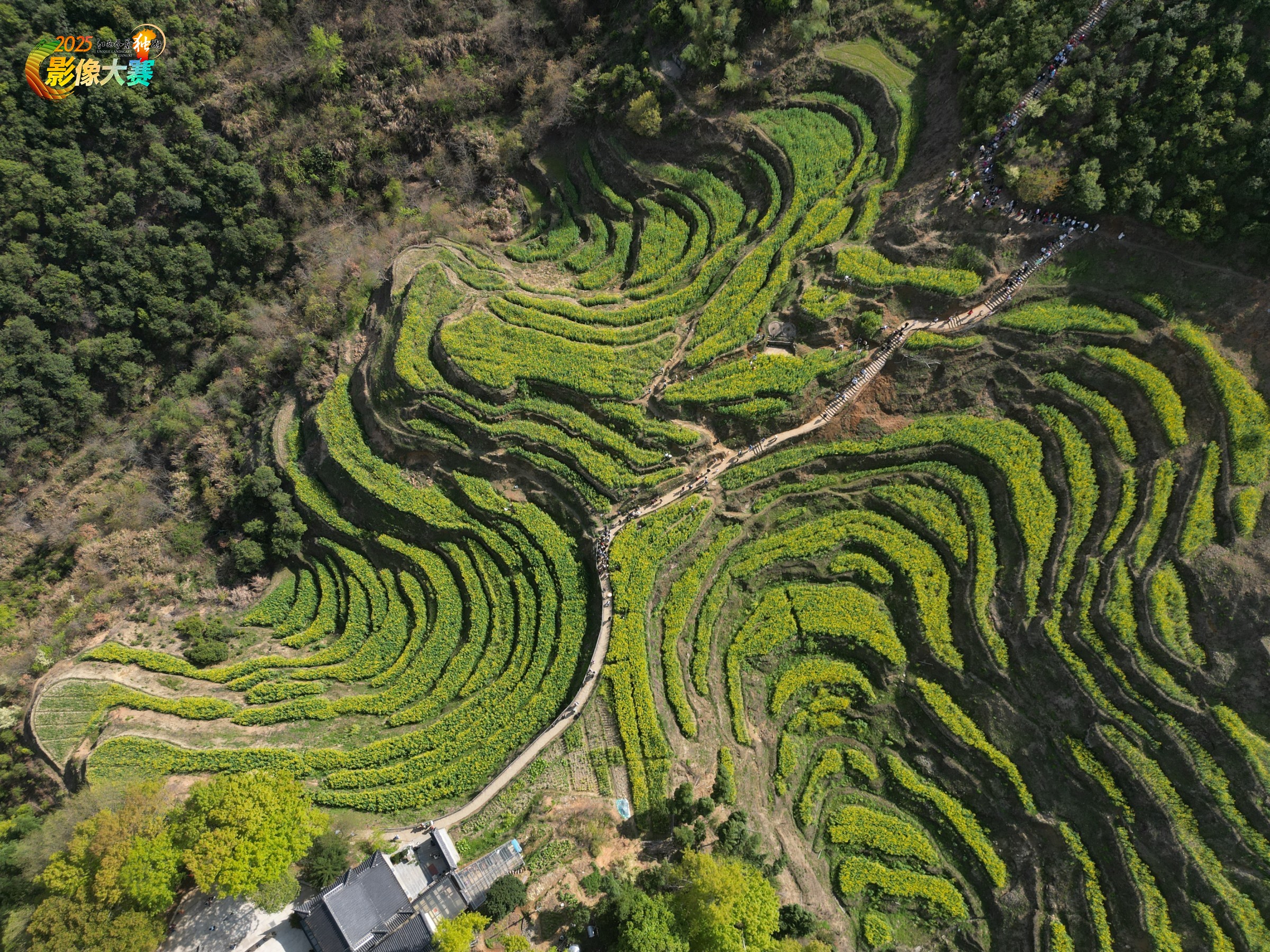 田埂蜿蜒如五线谱,油菜花是跃动的音符,风过时掀起金色波浪,仿佛大地在呼吸。