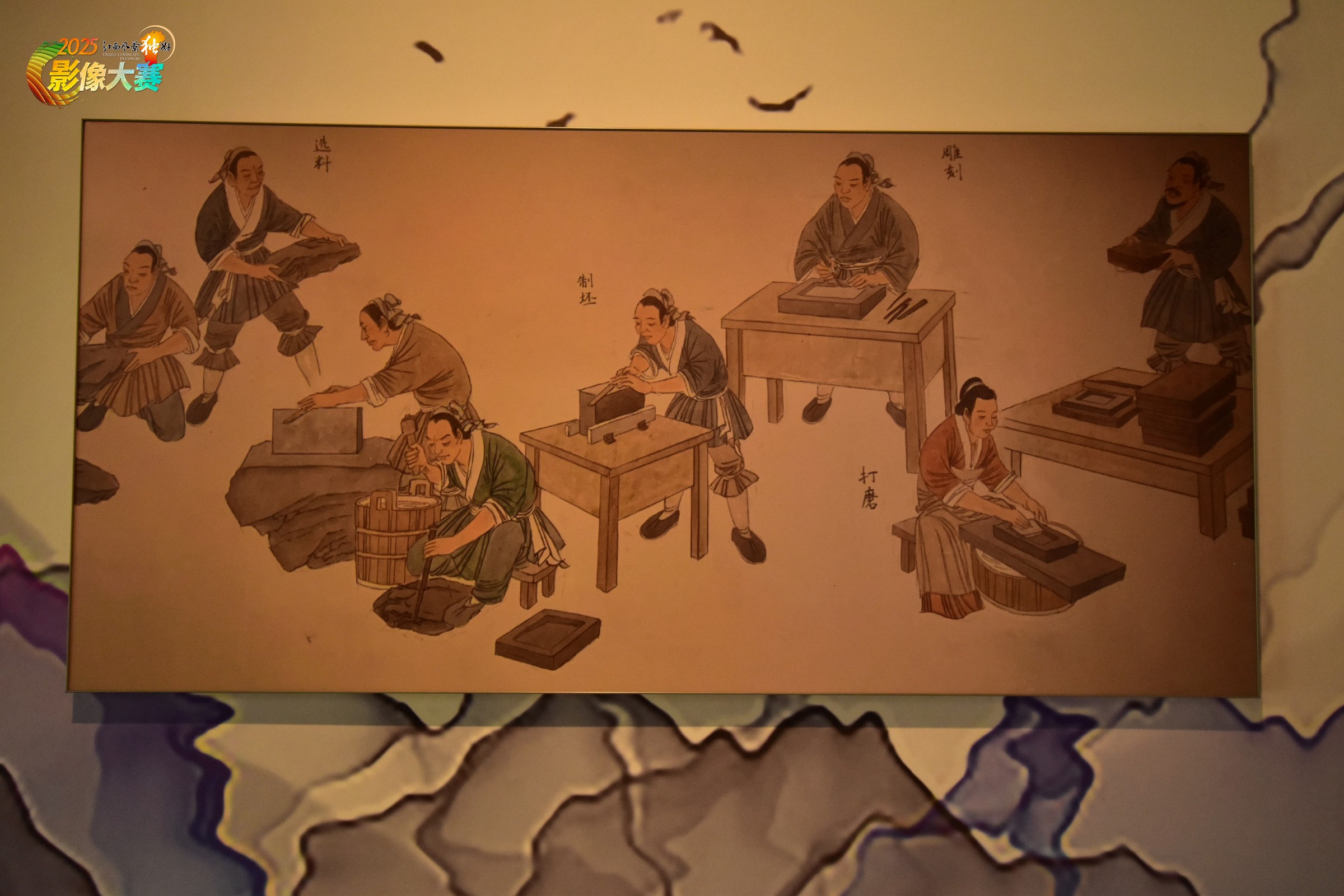 婺源歙砚是中国四大名砚之一,因产自古歙州婺源县龙尾山而得名,其石材为轻度千枚岩化的板岩,需经亿年地质形成‌。 傩舞是婺源国家级非物质文化遗产,源于商周时期的原始巫舞,用于驱邪祈福,被誉为“中国戏剧活化石”‌。