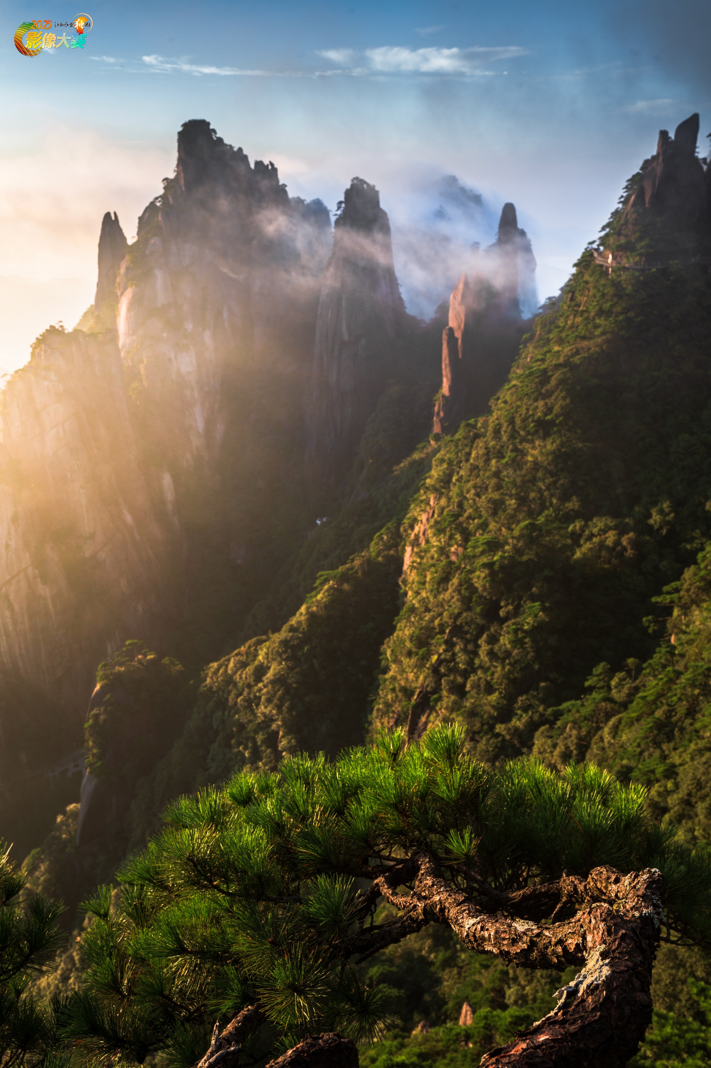 当第一缕晨光刺破云海,三清山的奇峰怪石便在朦胧中苏醒。那些经岁月雕琢的岩柱,似天神遗落的玉笋,在云雾里时隐时现,如仙境的剪影。 山风掠过,苍松的虬枝轻轻摇曳,翠绿的松针在光影里闪烁,与赭红色的山石交织出强烈的视觉张力。云雾如轻纱,缠绕在峰峦之间,忽而聚拢,忽而散开,让每一座山峰都有了水墨般的写意神韵。 在这里,时间仿佛放慢了脚步。晨光的金辉、云雾的清透、岩石的冷峻、林木的葱郁,共同谱写了一曲自然的交响。每一眼望去,都是天地对人间的慷慨馈赠,每一次呼吸,都是山林对心灵的温柔抚慰。 三清山,以石为骨,以云为裳,以光为墨,以绿为韵,在江南的山水画卷里,晕染出一方让人心生敬畏又沉醉不已的秘境。