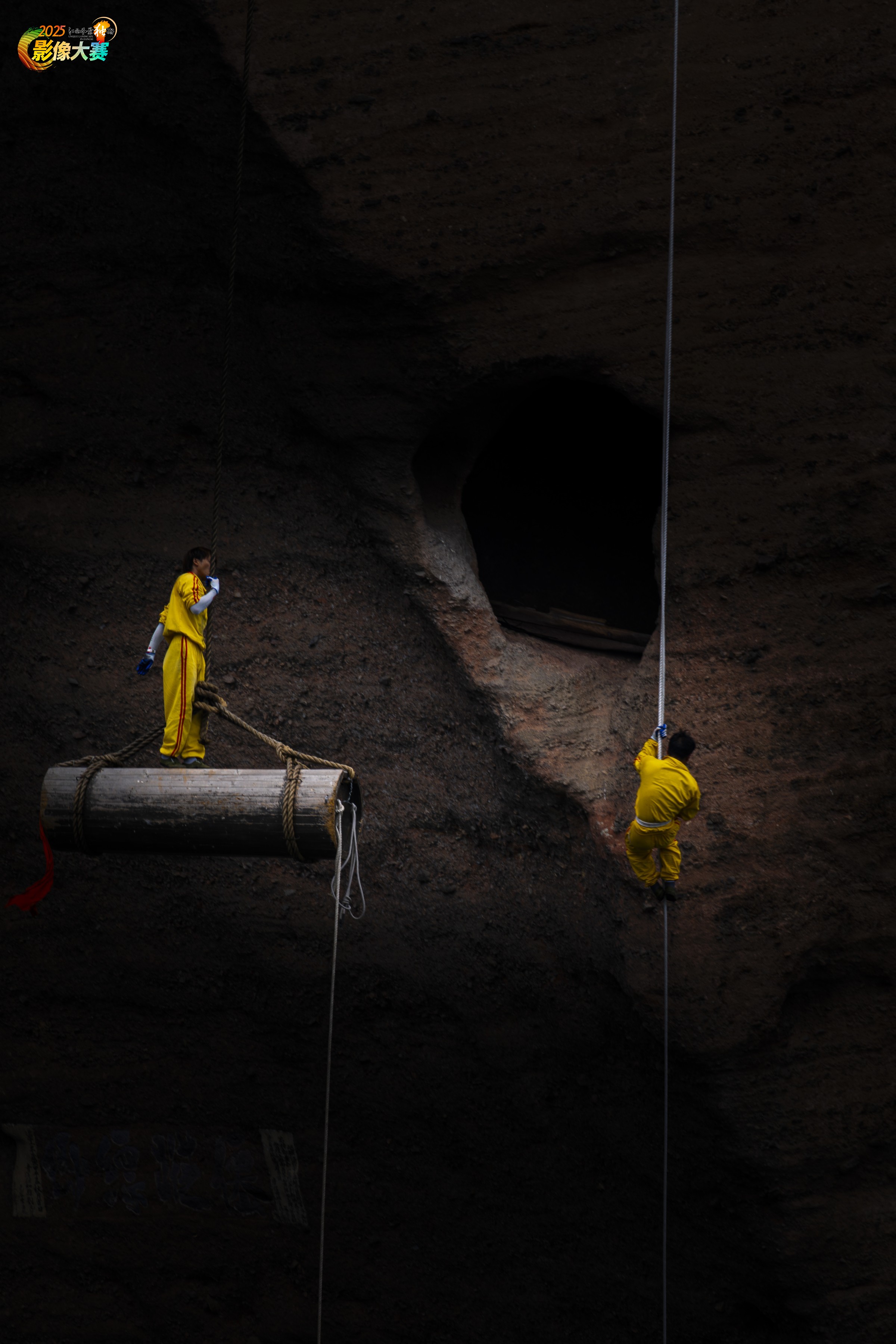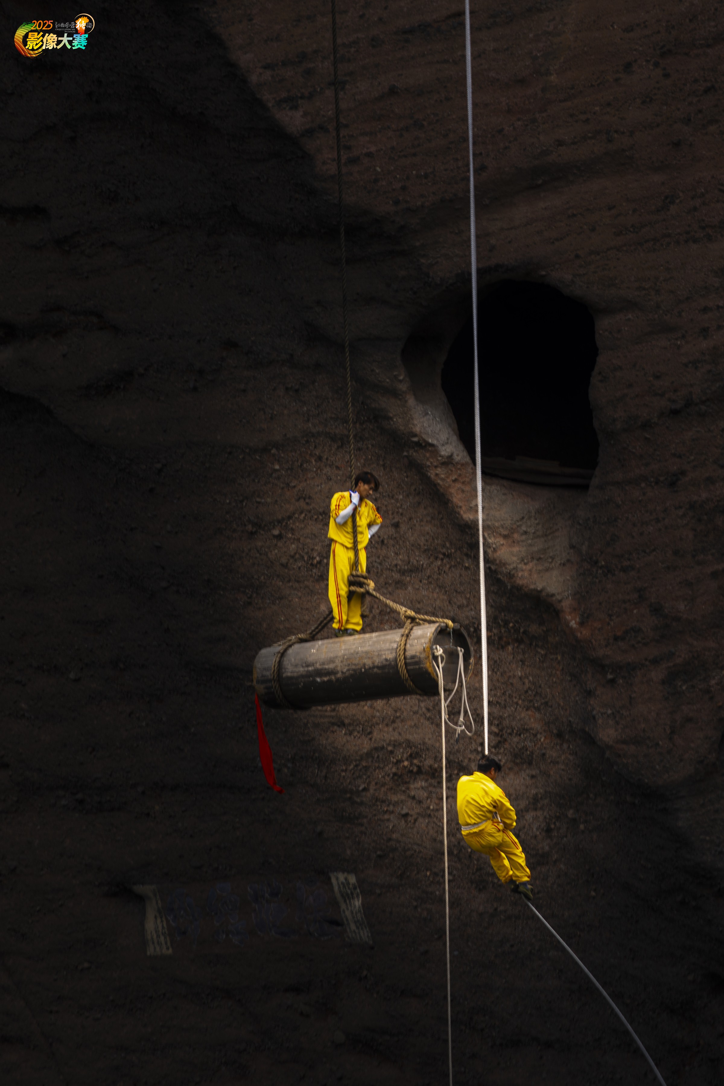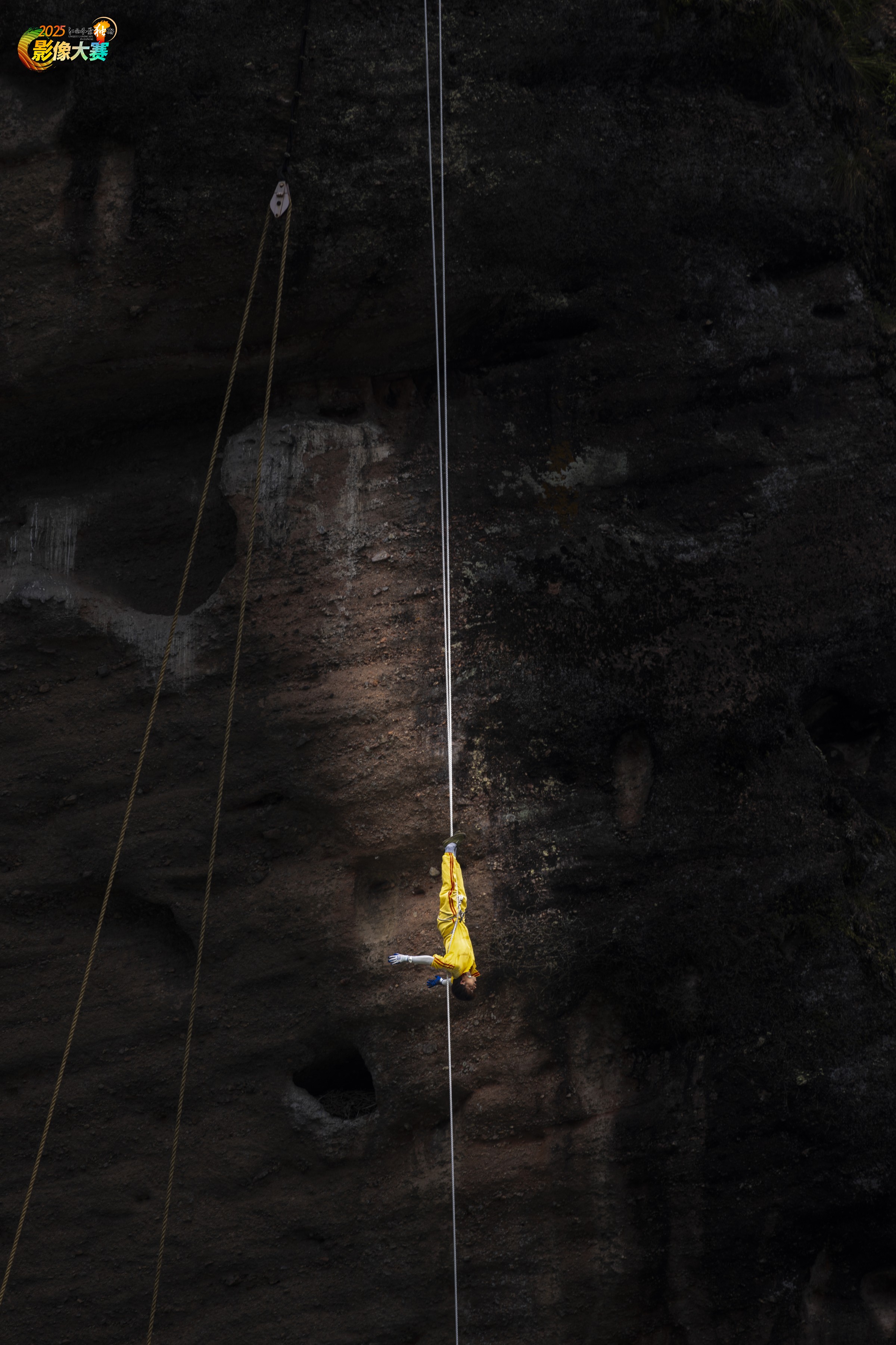 龙虎山崖墓是一道独特风景,棺木是怎样安葬到几十米上百米的悬崖绝壁之中,一直是个未解之谜。李氏兄弟的表演再现了千年前崖葬的实景。