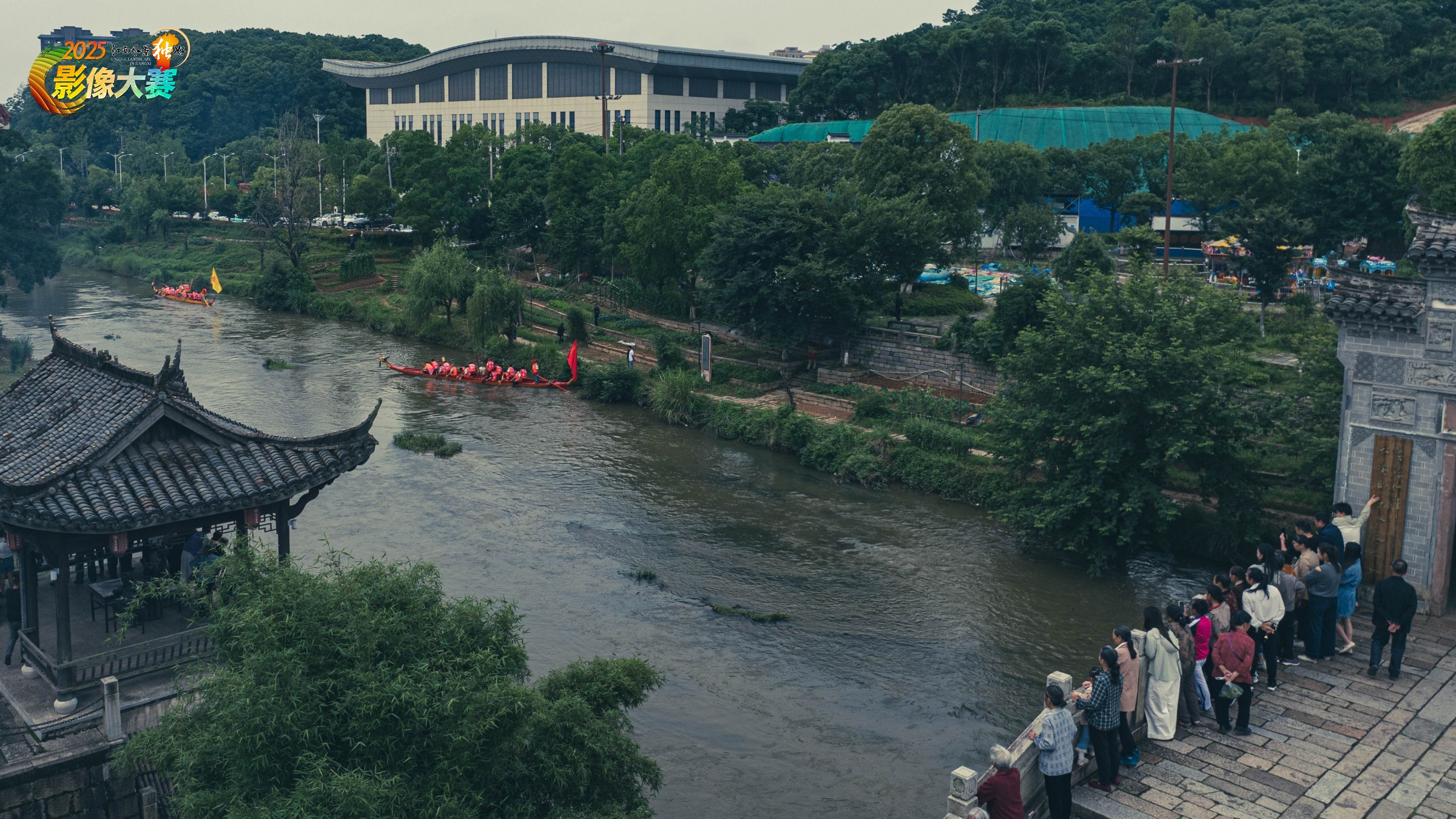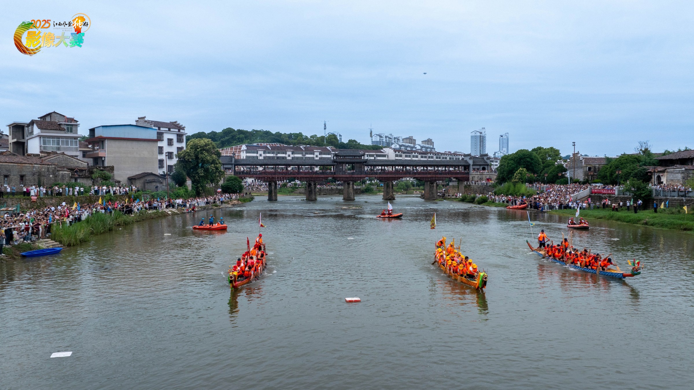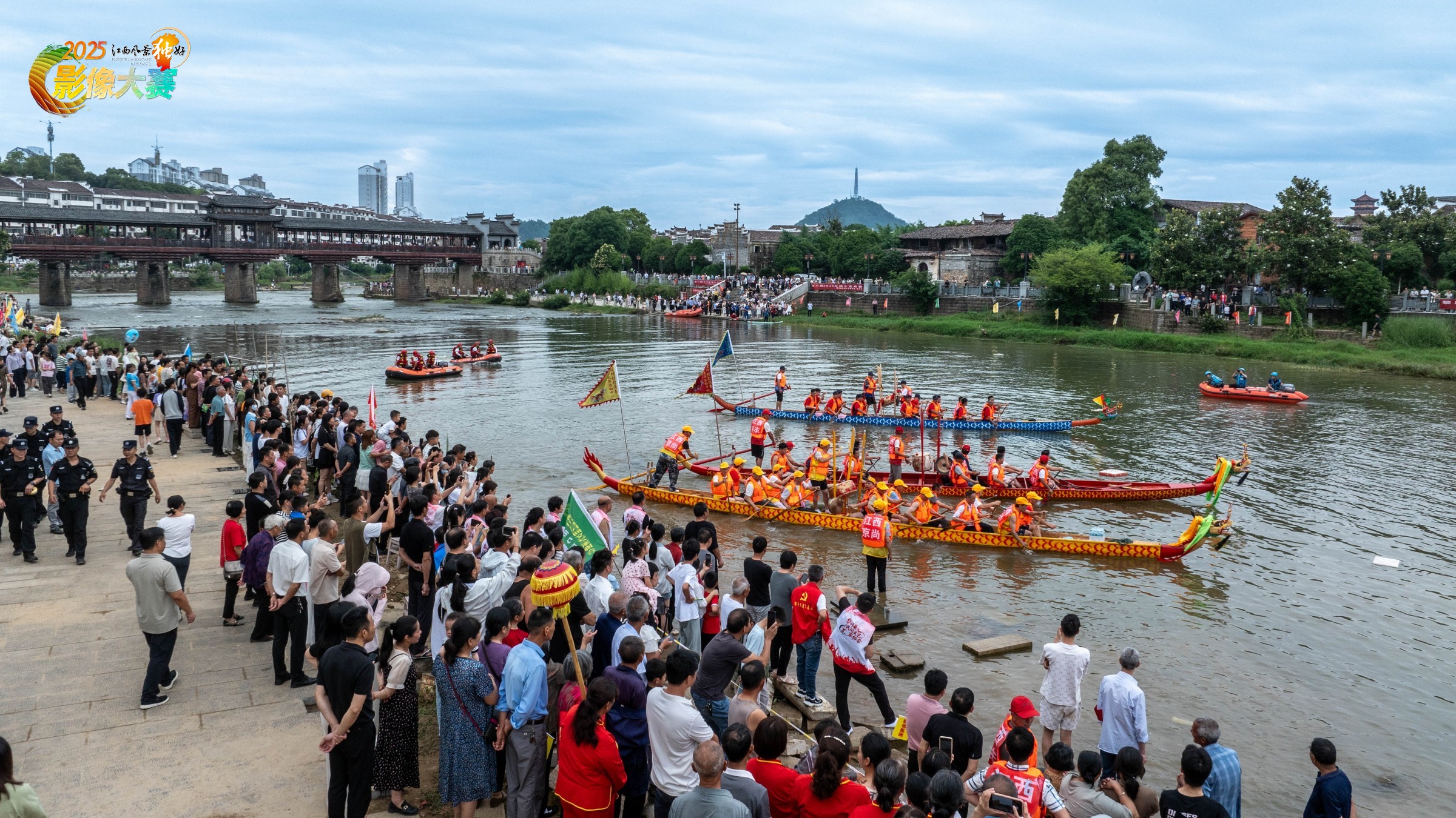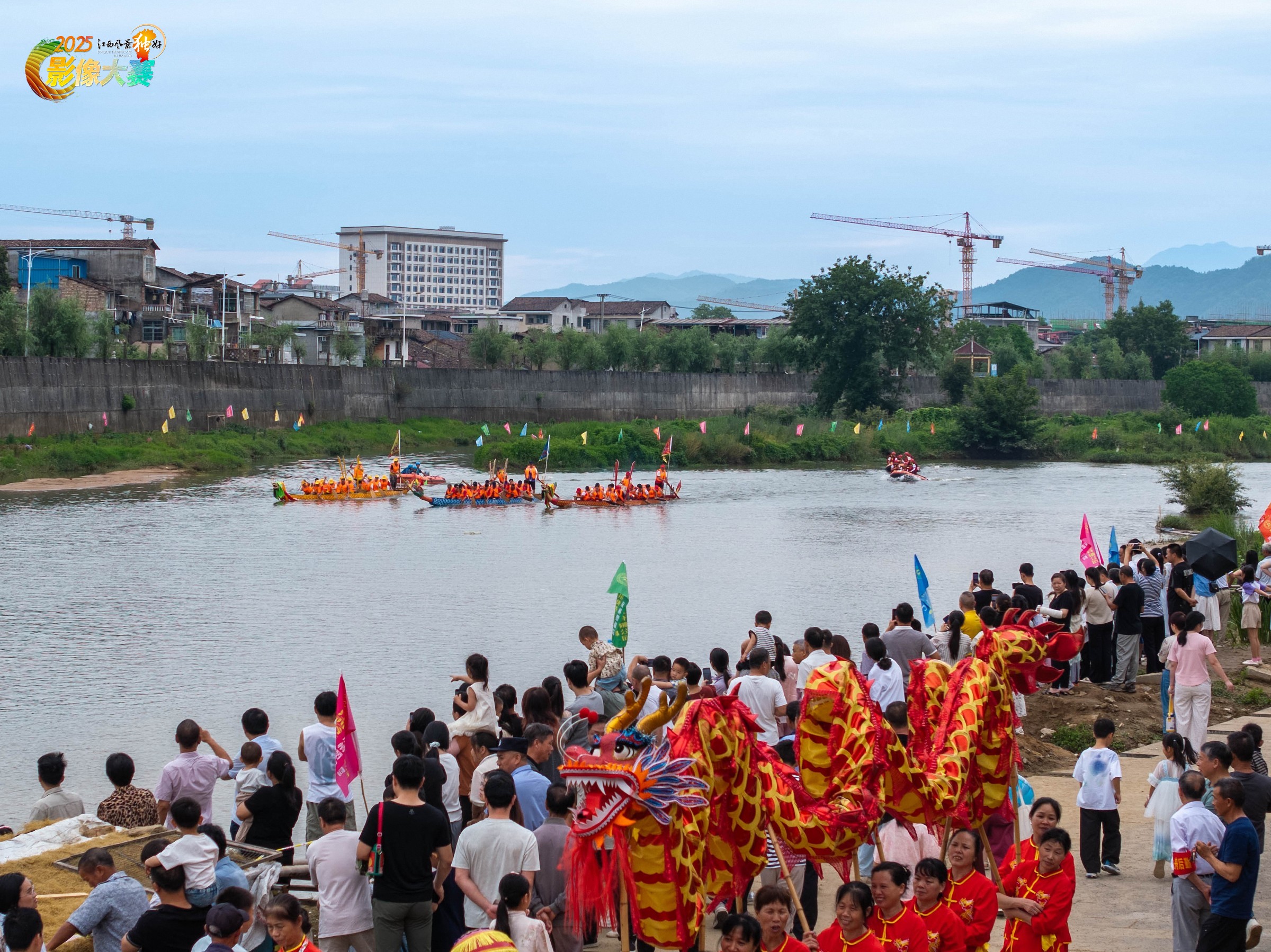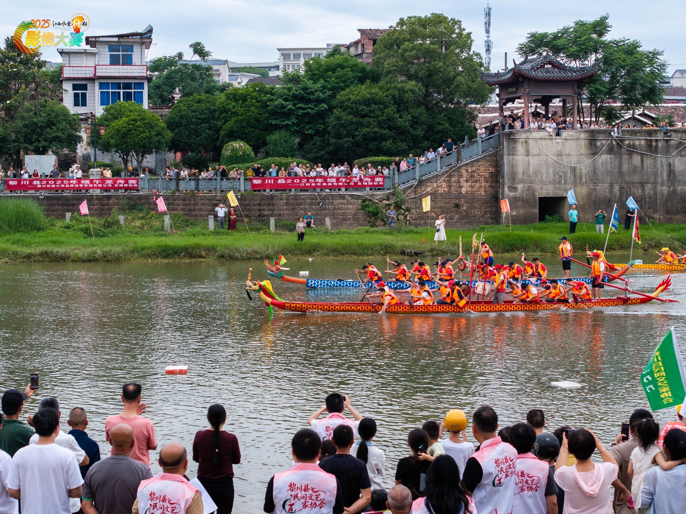 赛龙舟,作为一项传统习俗和体育活动,在我国已传承千年,并已被列入国家级非物质文化遗产代表性项目名录。照片记录的是黎川古城景区内举行的端午龙舟赛画面。