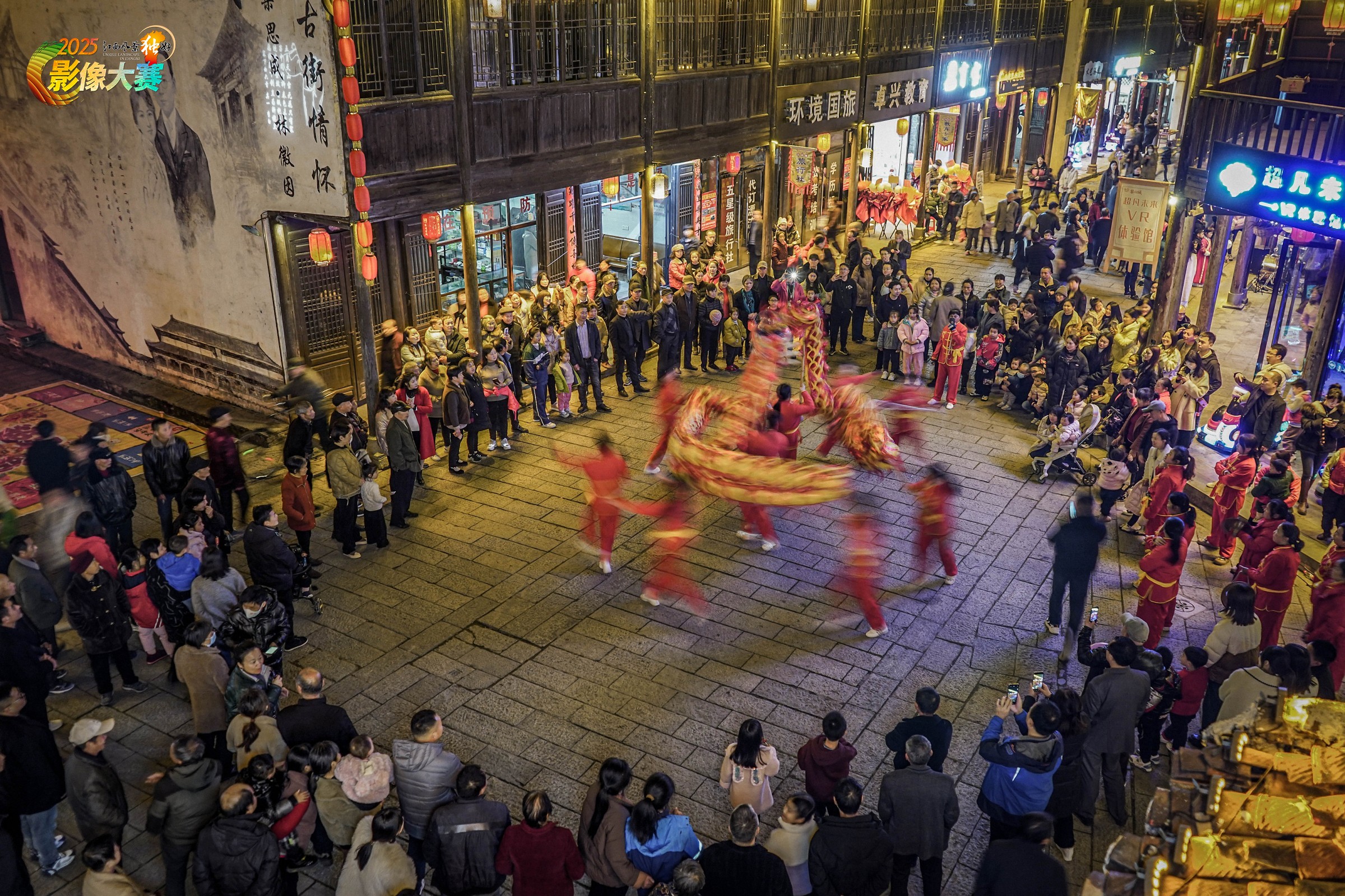 黎川县黎川古城内红色长龙翻腾跳跃,人群簇拥观看,传递着浓浓的年味。