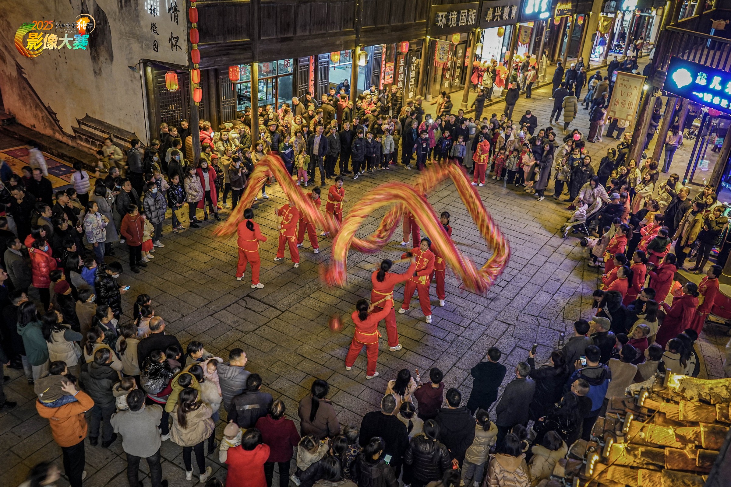 黎川县黎川古城内红色长龙翻腾跳跃,人群簇拥观看,传递着浓浓的年味。
