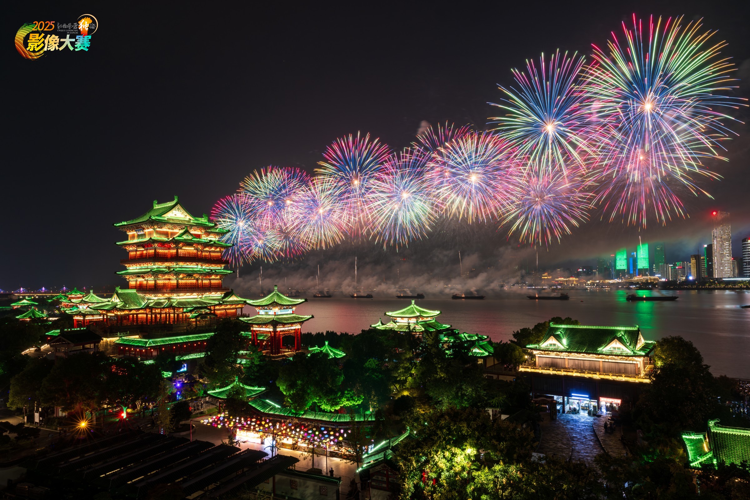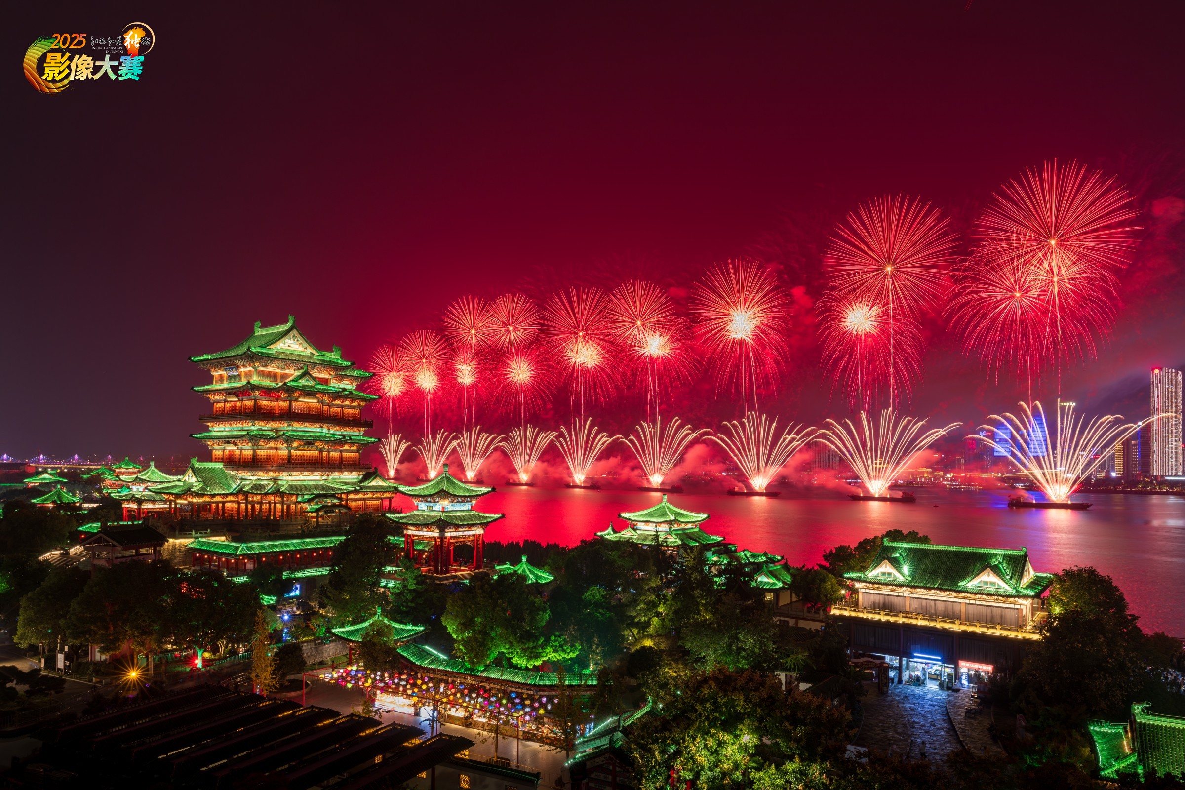 2025年10月1日20时,江西省南昌市在赣江之畔举办“盛世华彩 豫章欢歌”国庆烟花晚会,给市民游客带来了一场璀璨焰火与多元艺术元素交织的视听盛宴。在南昌的夜空下,漫天的烟火如流星坠落、似花雨绽放,与赣江的粼粼波光、城市的璀璨霓虹交相辉映。滕王阁与现代的楼宇在这一刻和谐共生,烟火的绚烂为这座历史名城披上了梦幻的霓裳,将南昌的夜晚渲染成一幅穿越古今的绝美画卷。