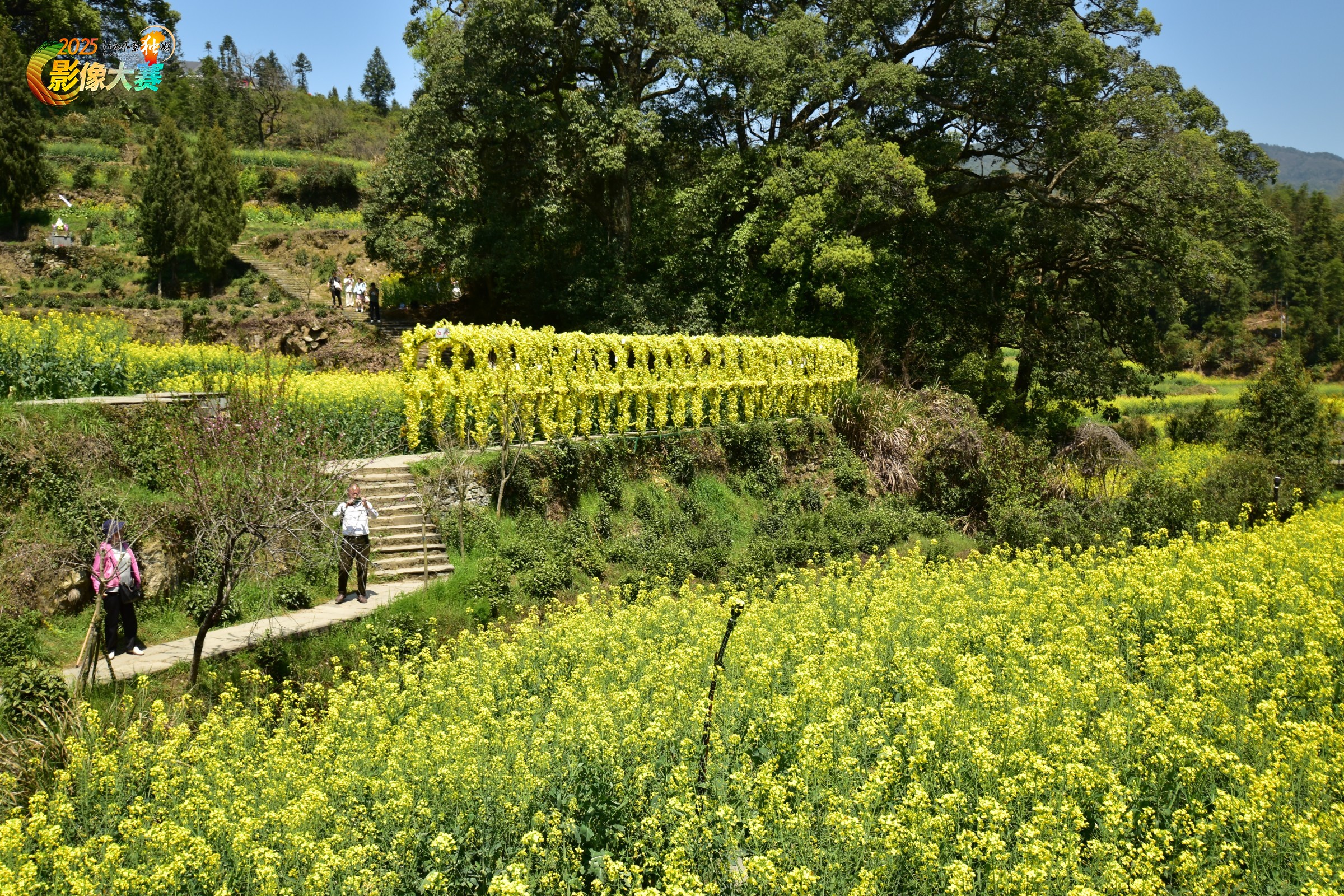 三万亩油菜花圃在山坳间铺展,像被阳光晒透的丝绸,每一片花瓣都镶着金边。田垄如刺绣的针脚,将明黄、鹅黄、琥珀黄缝制成立体的挂毯,风过时掀起层层叠叠的色浪,连空气都染成蜂蜜般的稠金色。