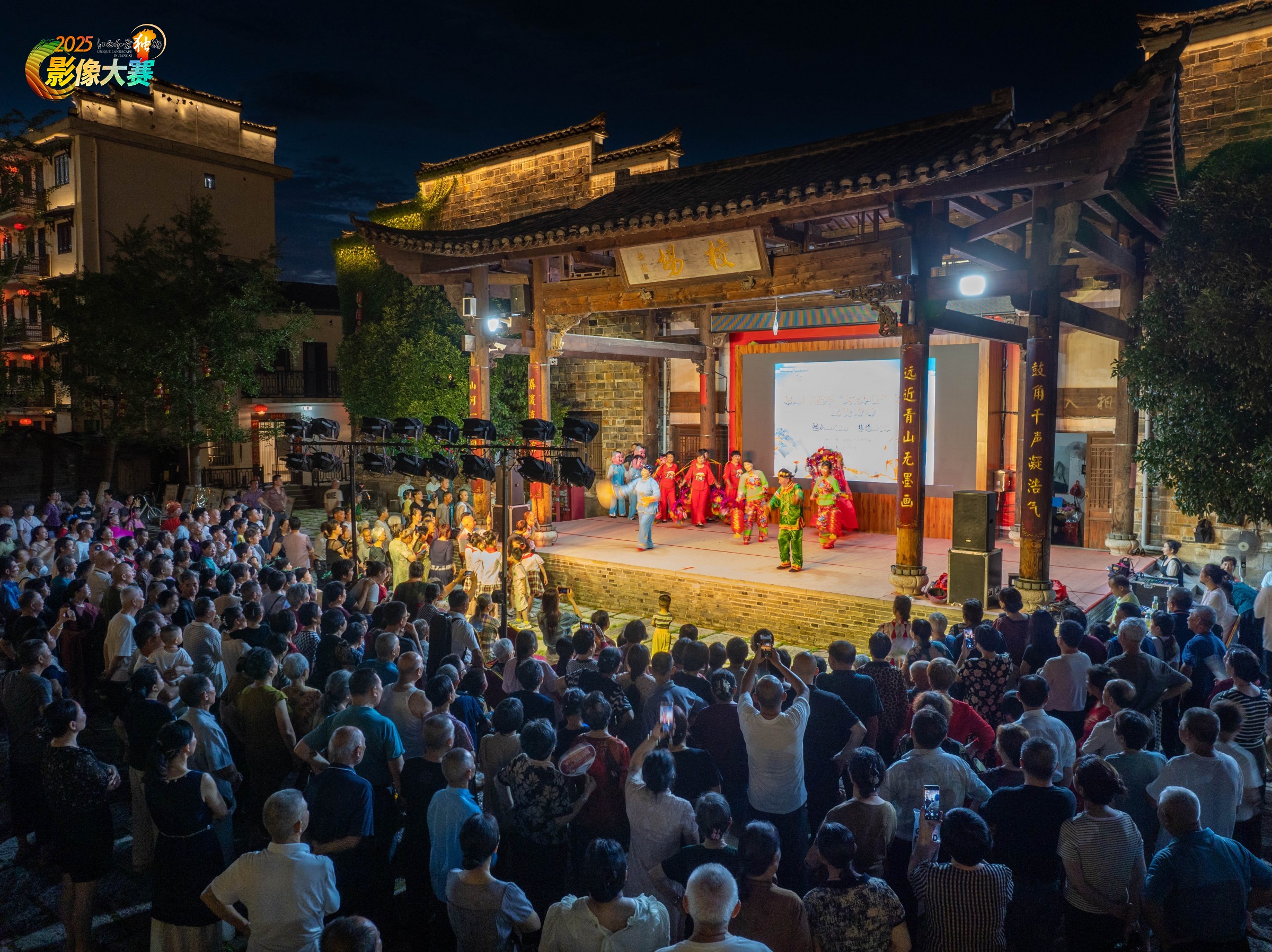 夜色中的江西黎川古城校场,戏台飞檐翘角,在暖光里尽显千年文脉的厚重肌理。民俗表演正鲜活上演:大头娃娃憨态可掬,挑花篮、菖蒲船等节目轮番登场 —— 这些从黎川历史岁月中走来的表演形式,是当地民俗文化的生动载体。台下里三层外三层的观众或凝神沉醉,或举机记录,古建的沧桑与民俗的灵动、人间烟火的热忱在此交融共振。千年文脉不再是尘封的过往,而是以 “活态” 的模样,在赣鄱大地续写 “江西风景独好” 的文化新篇,让历史底蕴与当下生活紧紧相依。