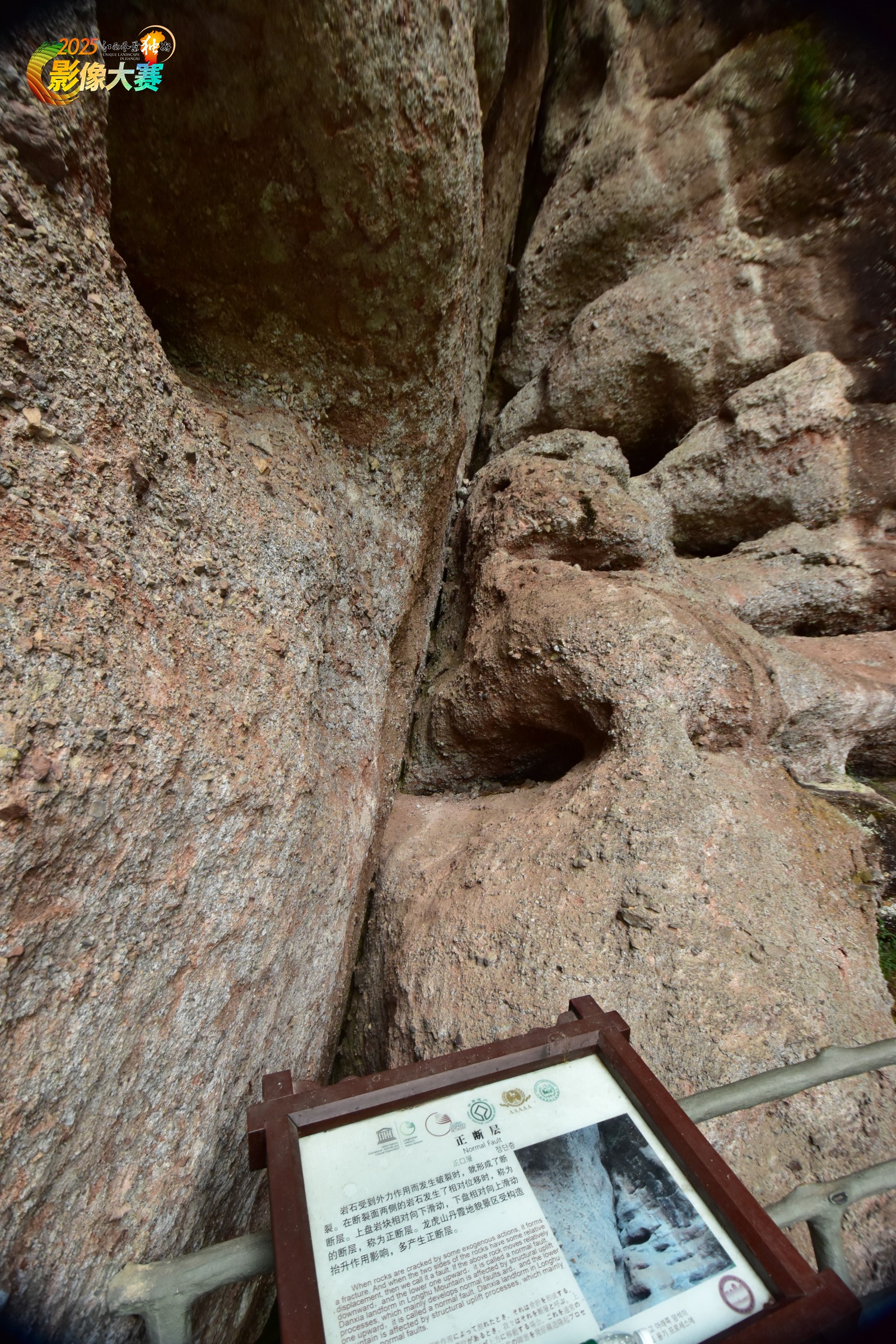 岩石受到外力作用而发生破裂时,就形成了断裂。在断裂面两侧的岩石发生了相对位移时,称为断层。上盘岩块相对向下滑动,下盘相对向上滑动的断层,称为正断层。龙虎山丹霞地貌景区受构造抬升作用影响,多产生正断层。