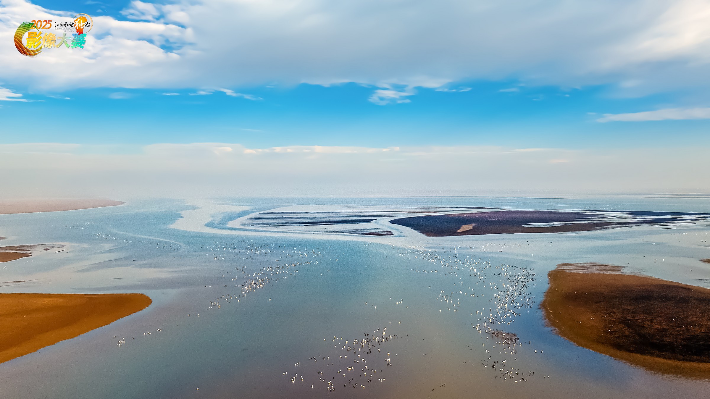 蓝天白云下,鄱阳湖格外美丽,候鸟们尽情歌唱,享受大自然的馈赠。