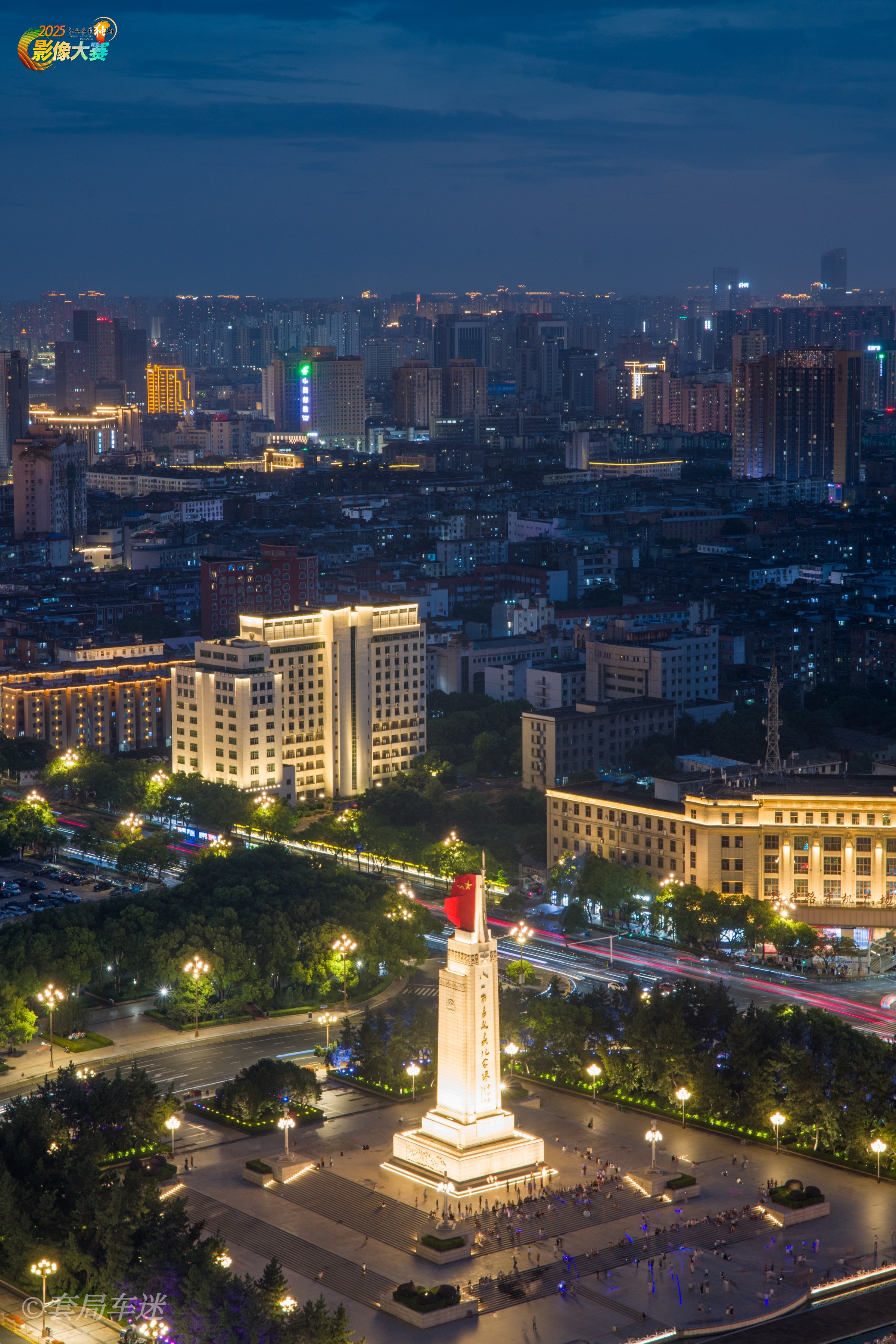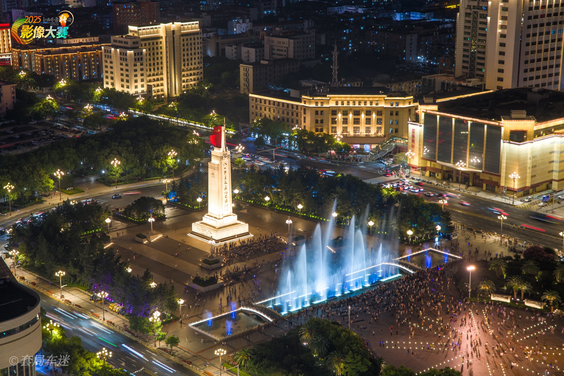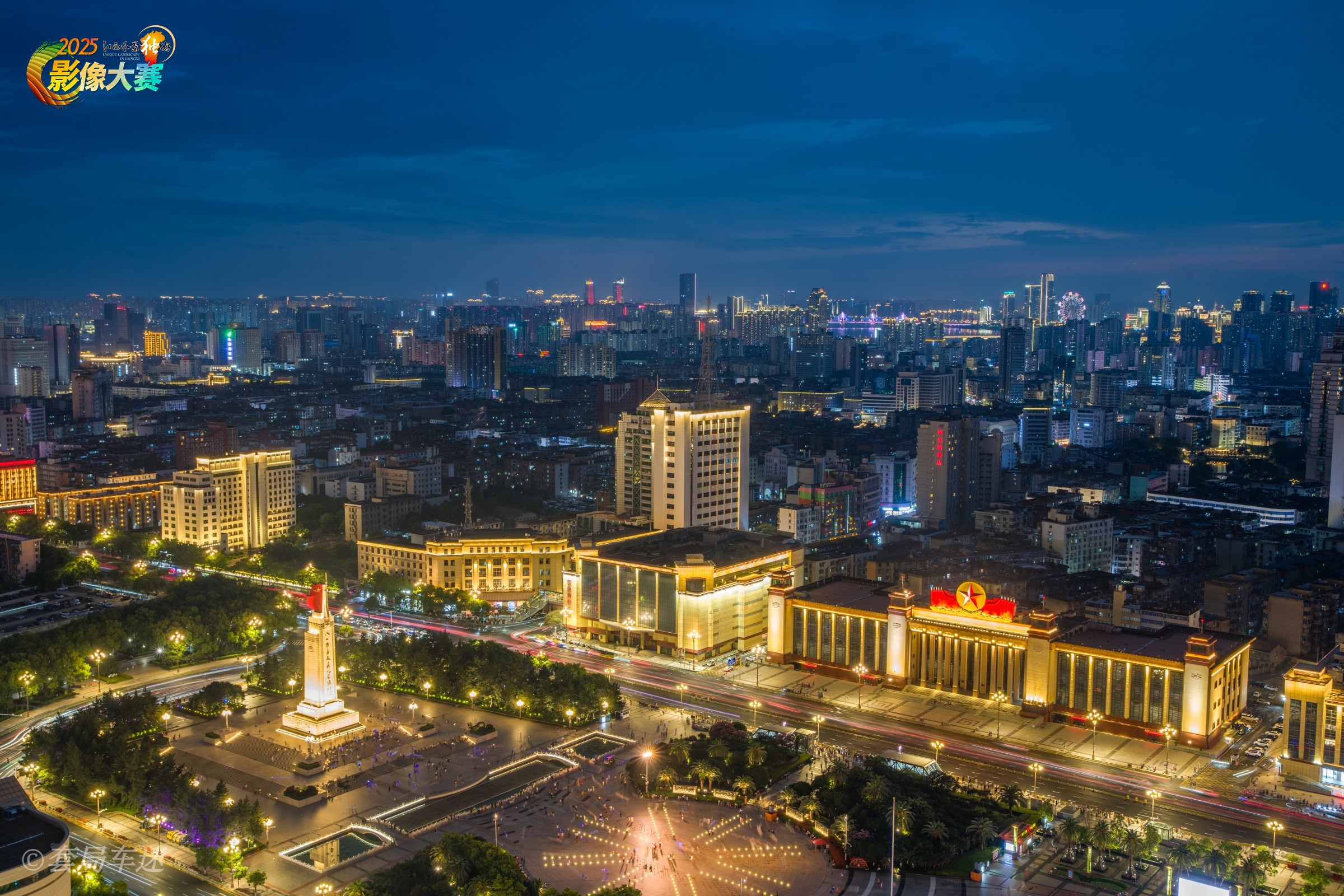 蓝调时刻八一起义纪念塔与江西省美术馆熠熠生辉