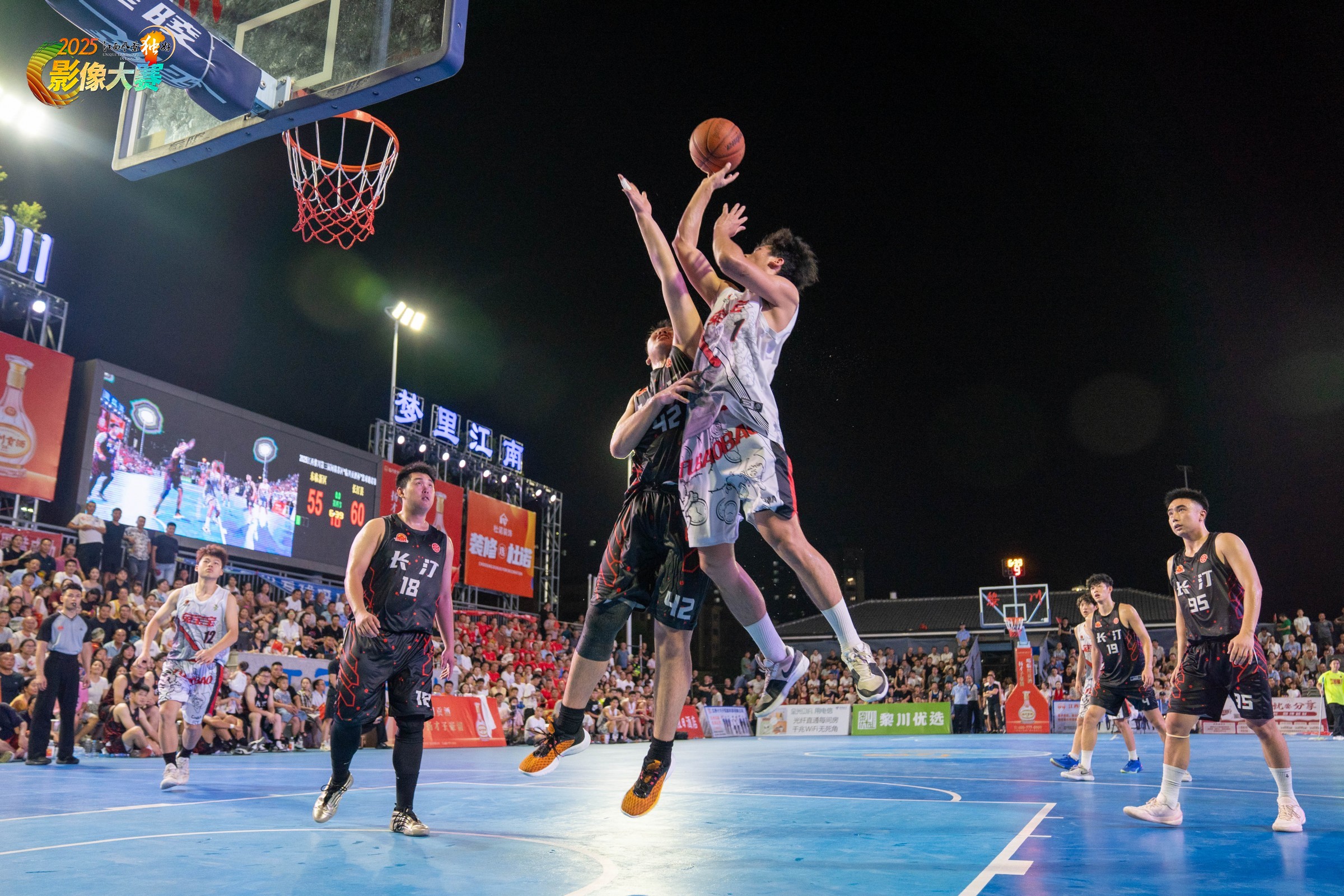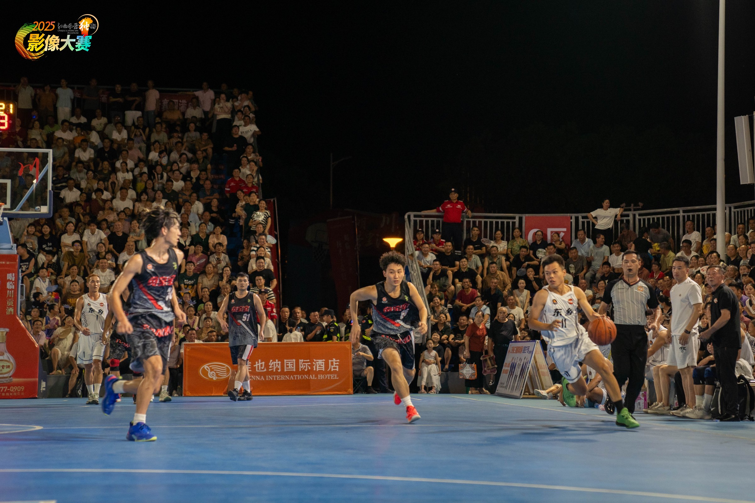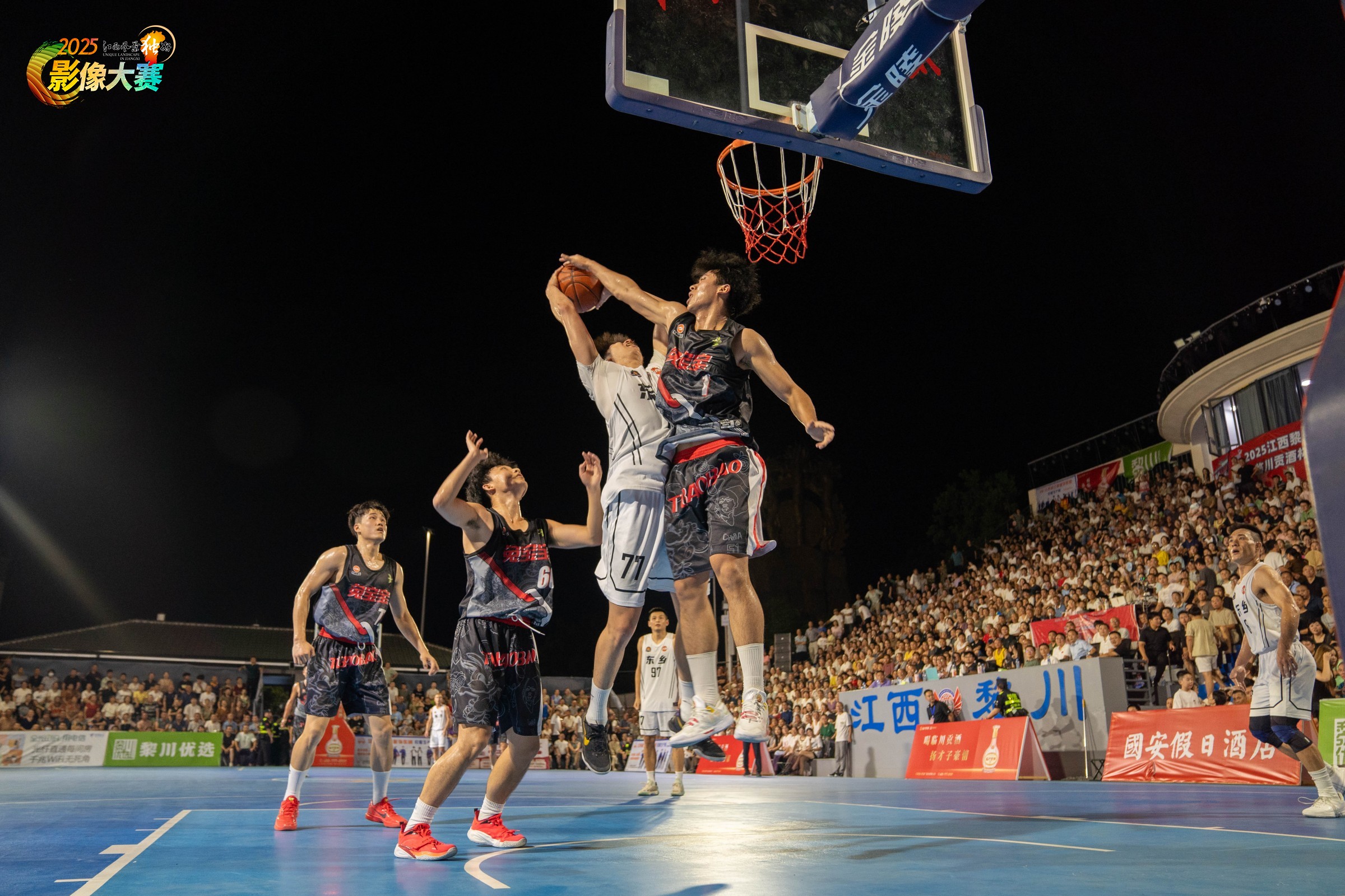 黎川是原中央苏区“全红县”,赛事以“闽赣苏区”命名,旨在传承苏区精神,通过体育赛事弘扬红色文化,让年轻一代铭记历史,增强对革命传统的认同感和自豪感。赛事吸引了闽赣两省的球队参与,成为两地文化交流与合作的桥梁,球员和观众通过比赛增进了解,传承红色基因,推动区域间的经济、文化互动,助力苏区振兴发展。照片记录的是2025江西黎川第三届闽赣苏区“临川贡酒杯”篮球邀请赛的比赛现场。